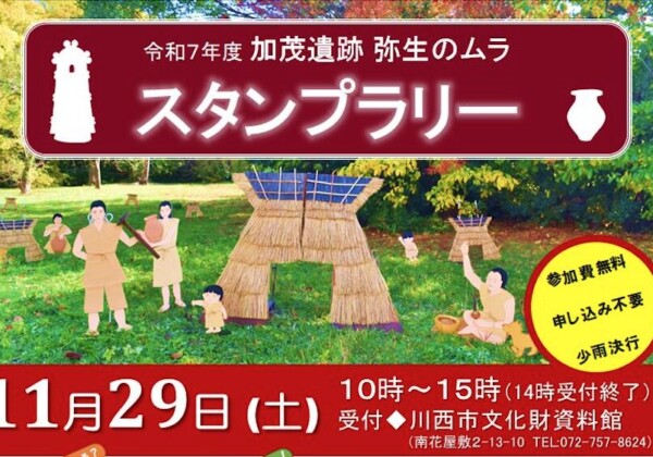 11/29(土)、川西市文化財資料館で加茂遺跡 弥生のムラ スタンプラリーが開催されるみたい。