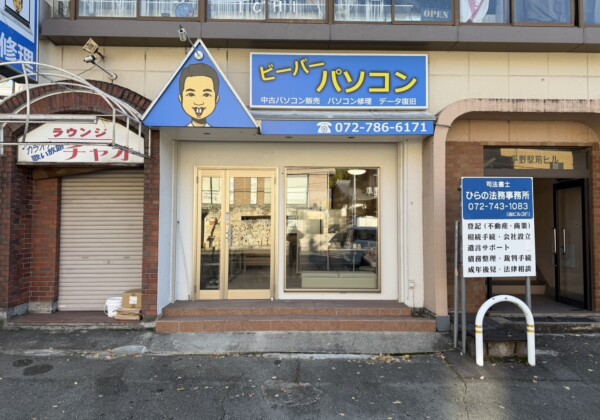 平野の24時間営業の服屋さん「古着deいこか」のあった所にビーバーパソコンがオープンしてる。