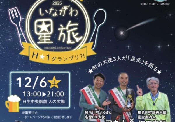 12/6(土)、日生中央駅前人の広場で、いながわ星旅2025H★1グルメグランプリ?!が開催されるみたい。