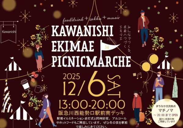 12/6(土)、川西能勢口駅前デッキで川西駅前ピクニックマルシェとイルミネーション点灯式が開催されるみたい。