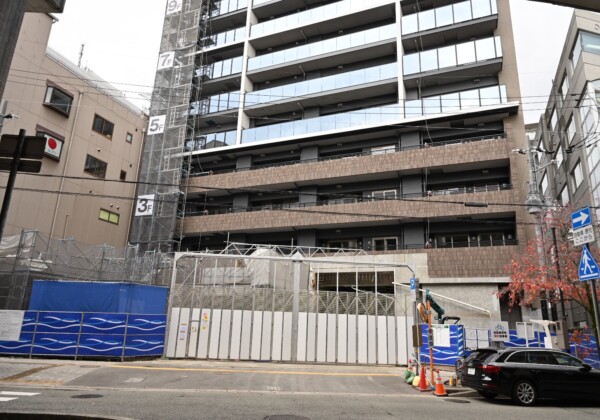 川西市中央町で建設しているマンション・ジオ阪急川西の外観がだいぶ出来上がってきた。