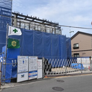 中央町で建設していたマンション(仮)川西市中央町PJの外観がほぼできてる。