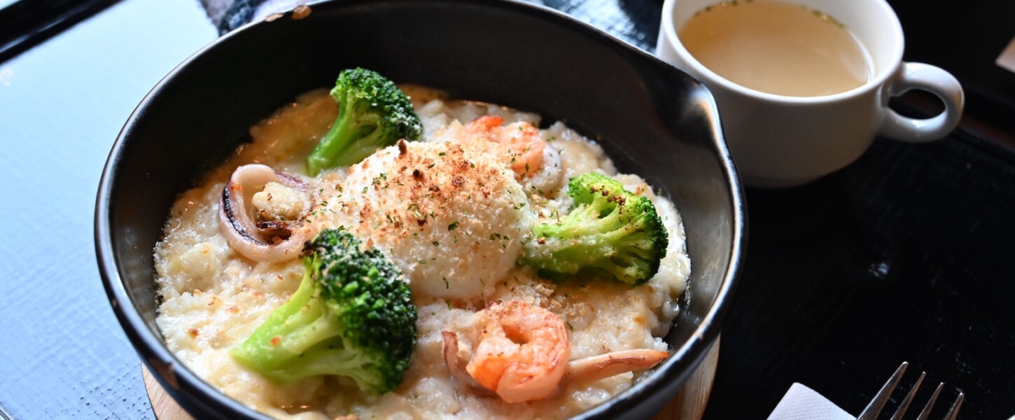 珈乃香 川西本店の冬限定メニュー「シーフードドリアセット」が絶妙な塩加減が海の幸の美味しさを引き立たせていて美味いっ!