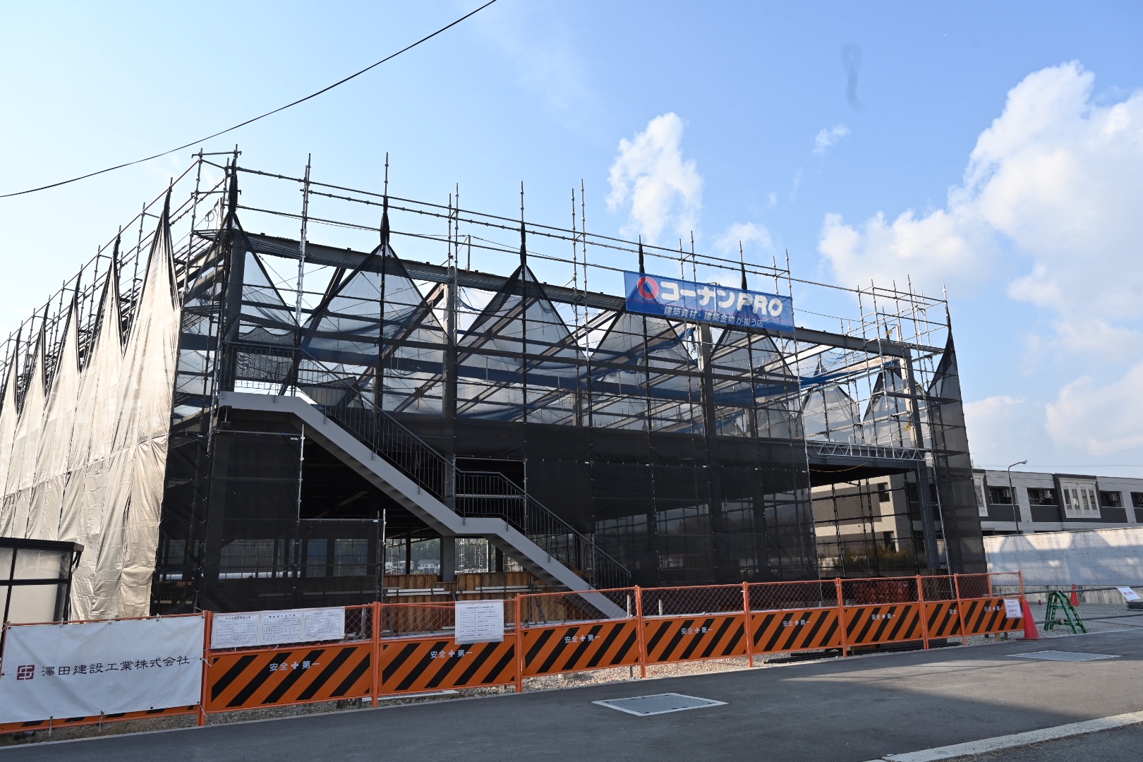 さて、このコーナンPRO、元々は2025年2月5日オープン予定とのことでしたが、改めて工事中の建物を見ると…