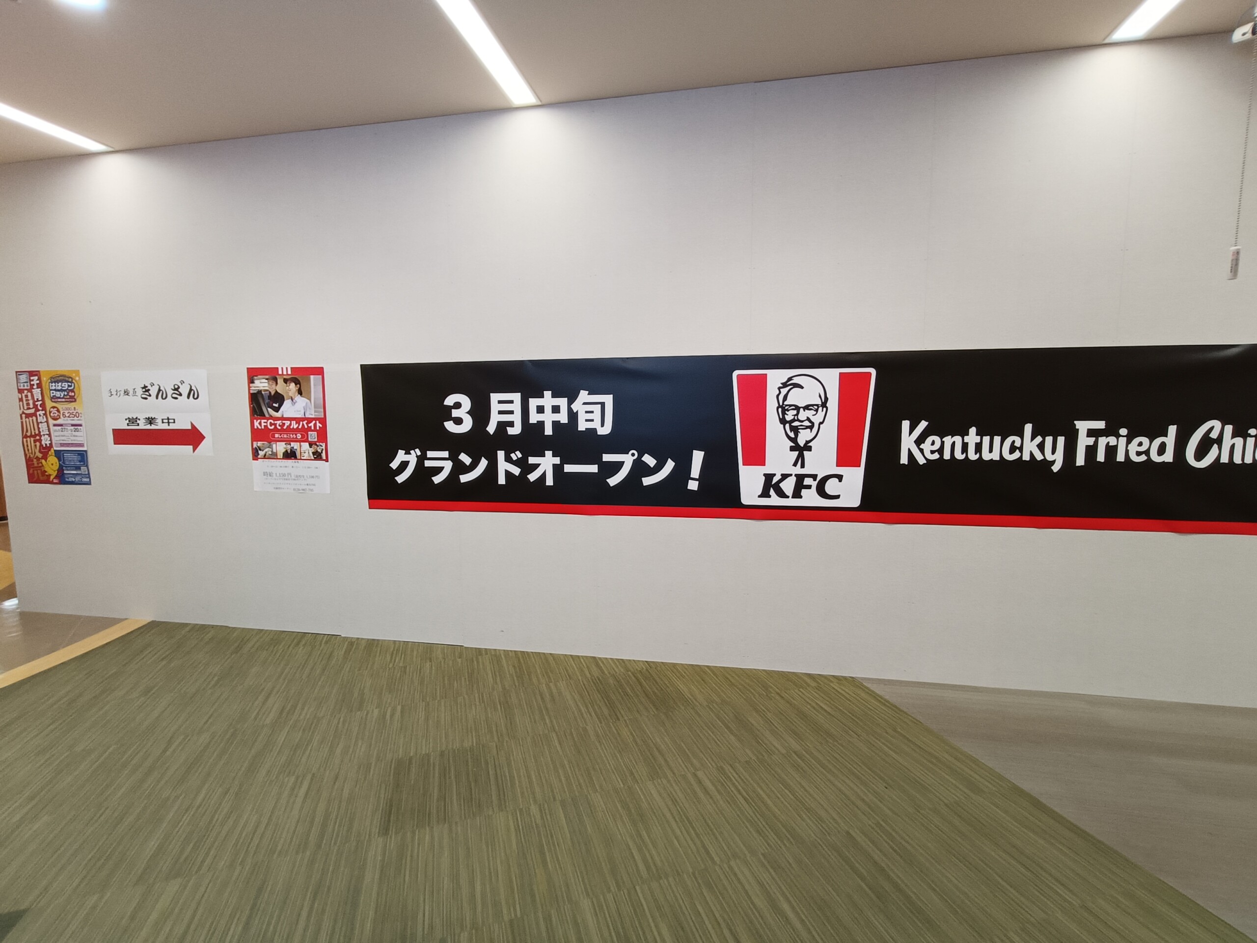 ケンタッキーイオンモール猪名川店は、大衆的麺屋食堂喜喜の跡地に3月中旬オープンするみたい。