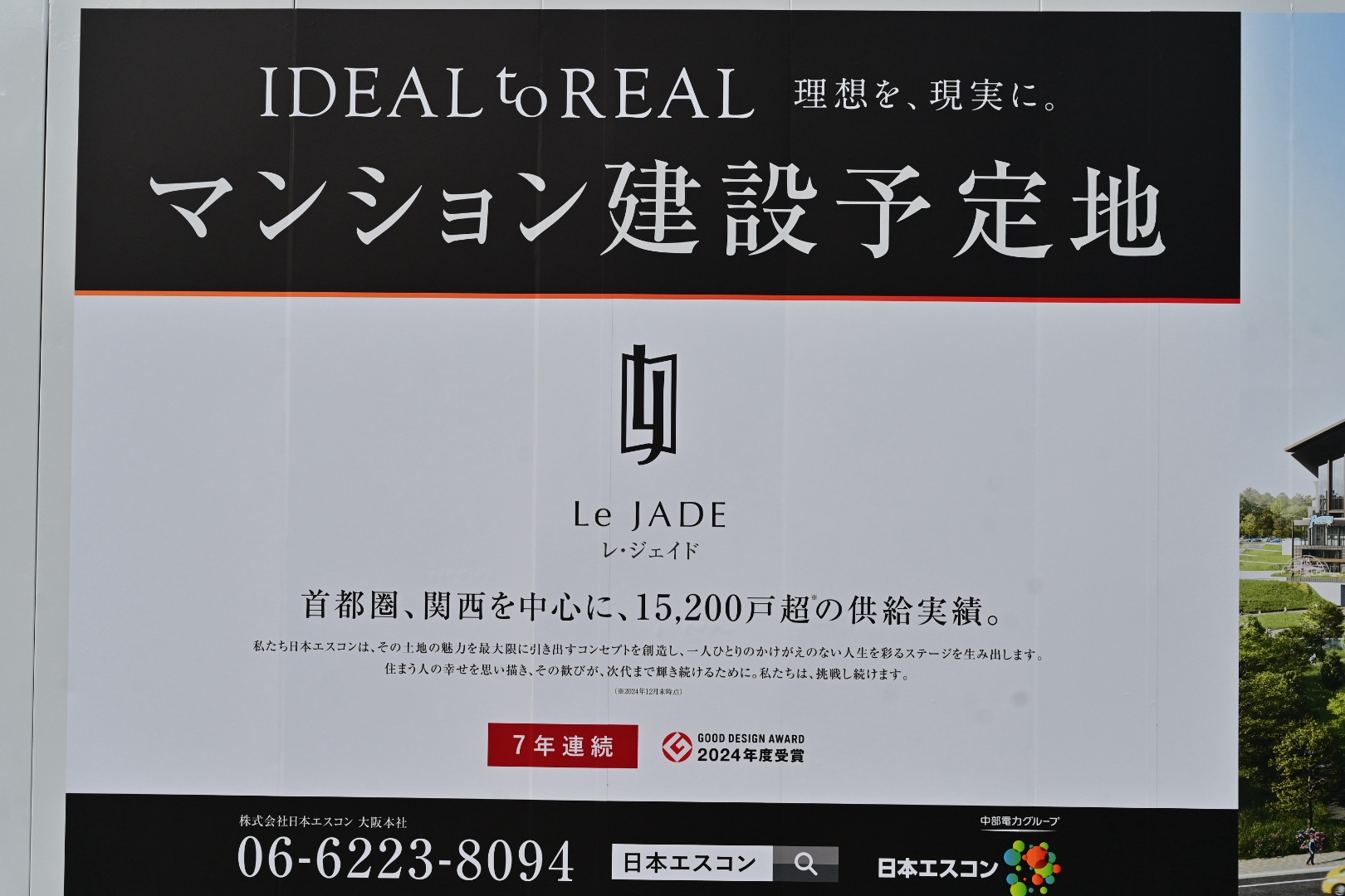 前は真っ白な壁だったのが、ついにマンションの写真が張り出されました。