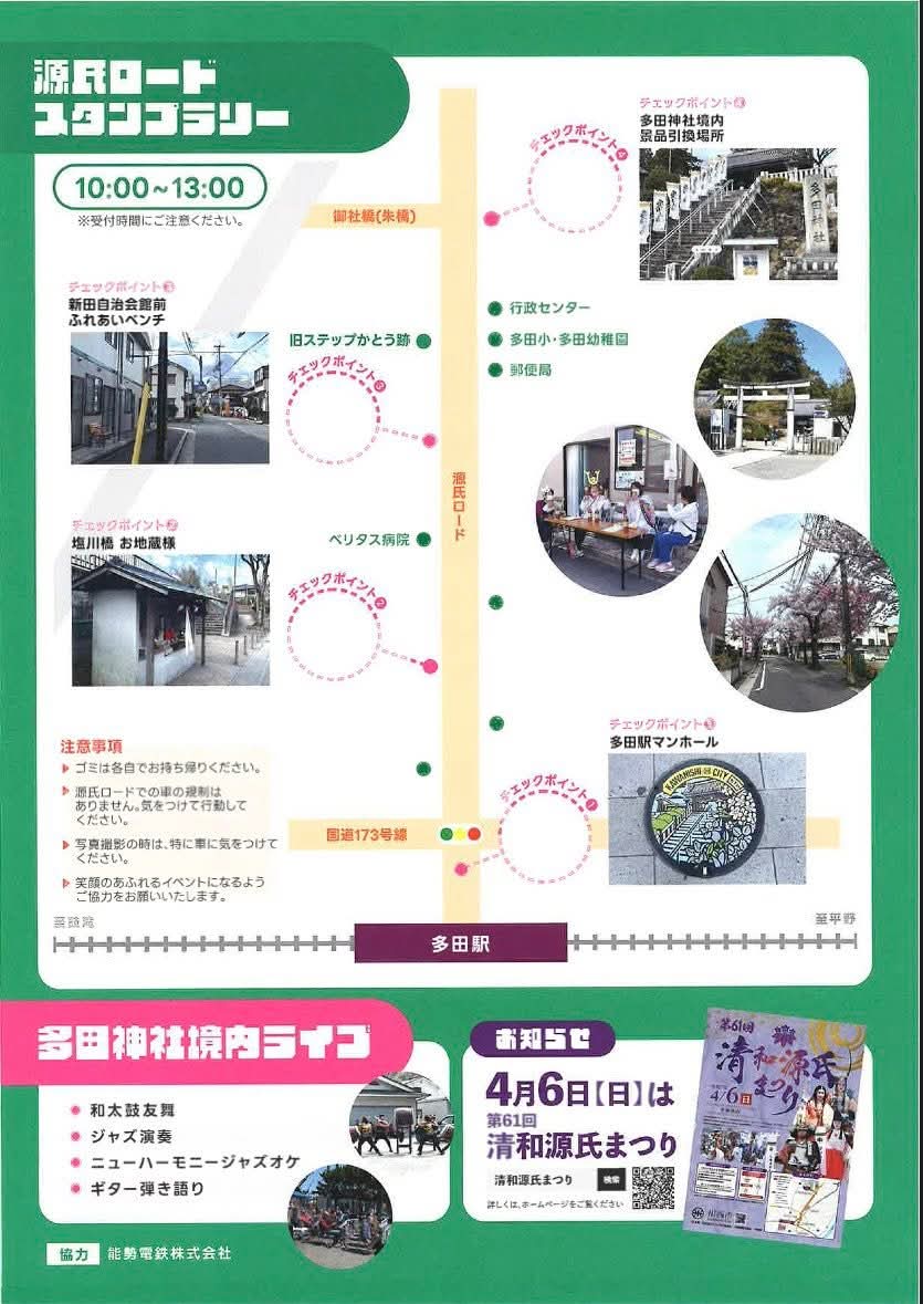 4/5(土)、多田神社で多田の市、多田神社〜多田駅周辺で源氏フェスタが同時開催されるみたい。