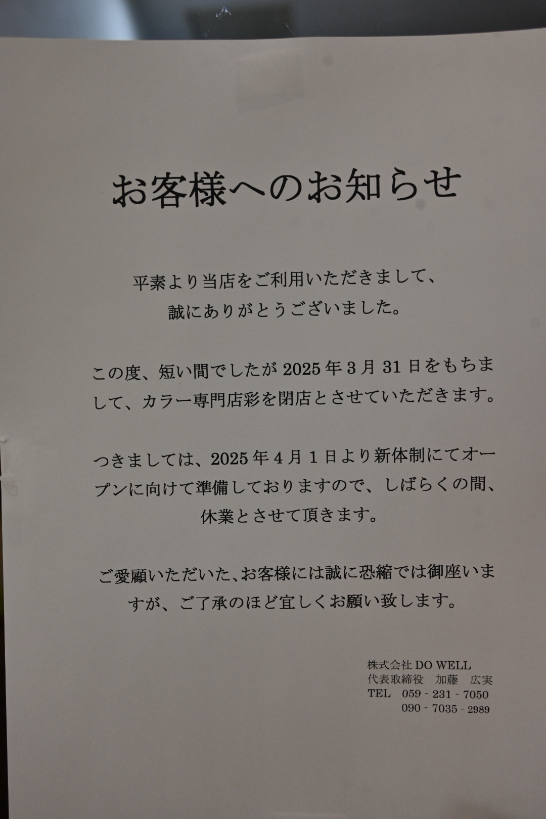 ヘアカラー専門店 彩は、2024年11月16日だったんですが…
