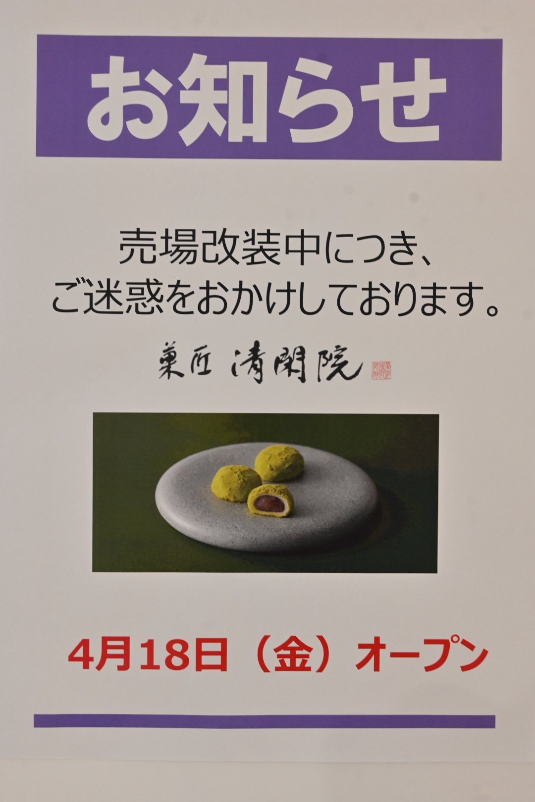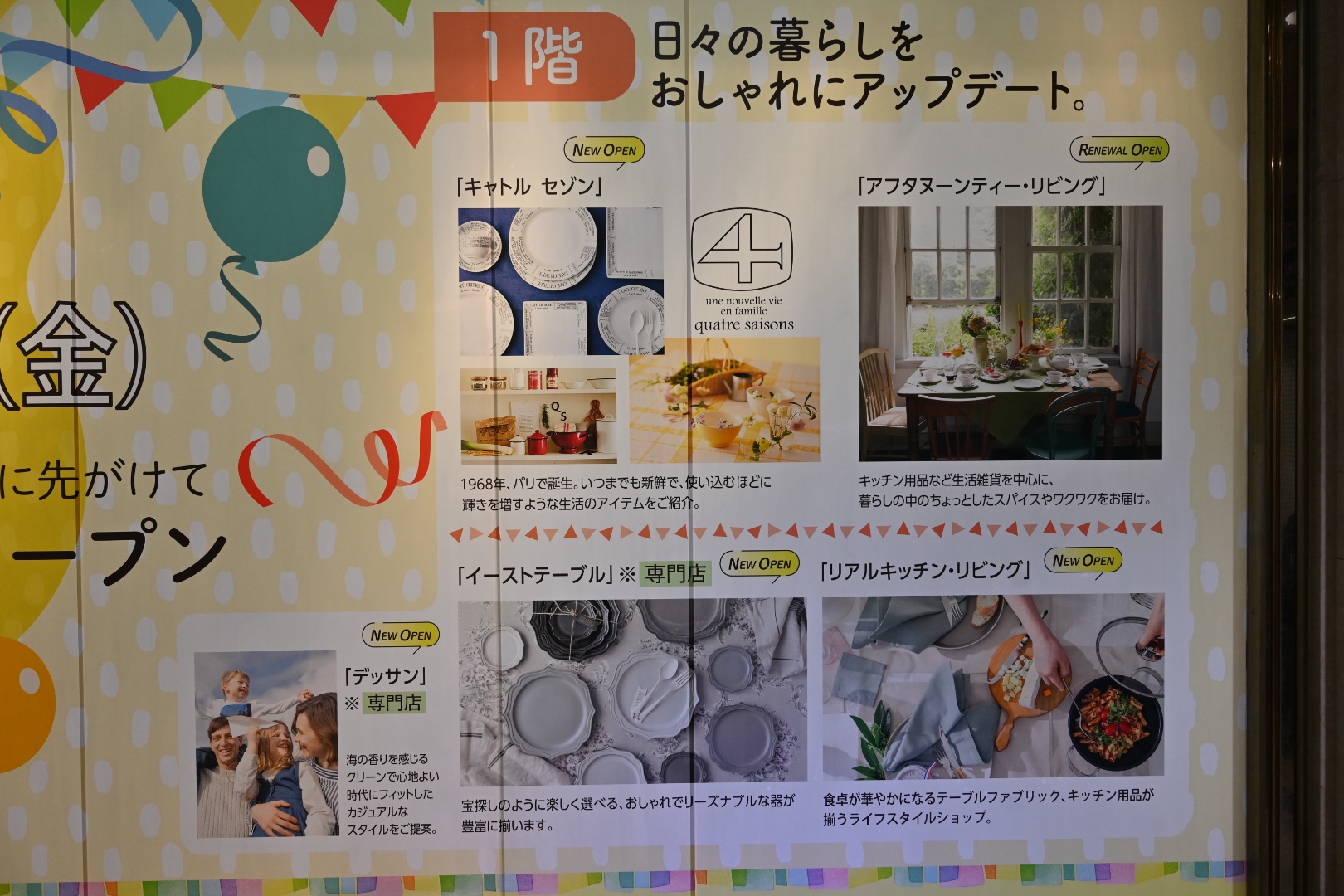 まず、地下はシュガーバターの木、菓匠清閑院、松井老舗、ベルブラージュ、まい泉、四陸がオープン。