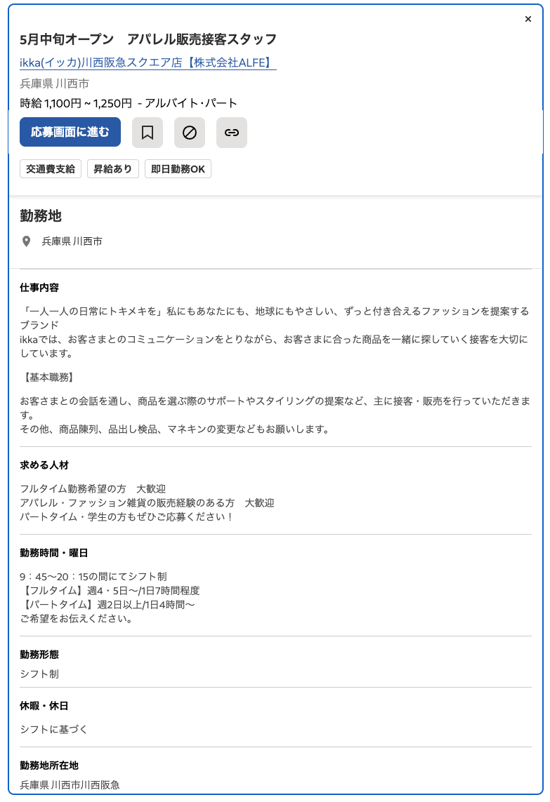5月中旬、ikka(イッカ)川西阪急スクエア店がオープンするみたい。