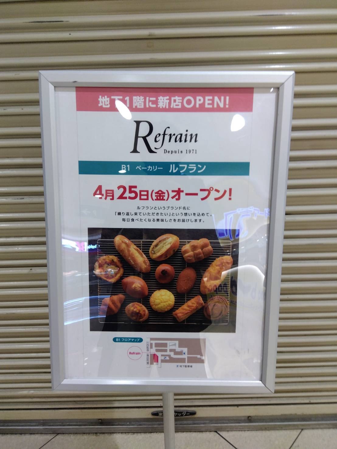 アステ川西地下1階のアールベーカリーの後には4/25(金)にルフランができるみたい。