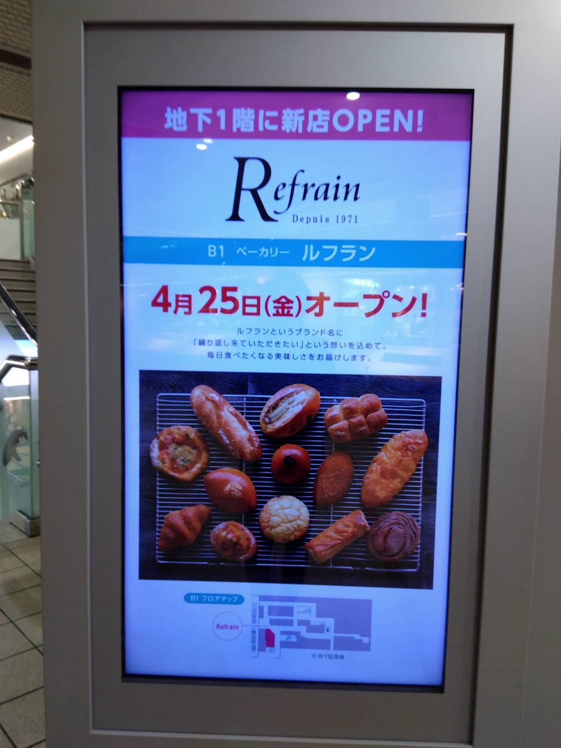 アステ川西地下1階のアールベーカリーの後には4/25(金)にルフランができるみたい。