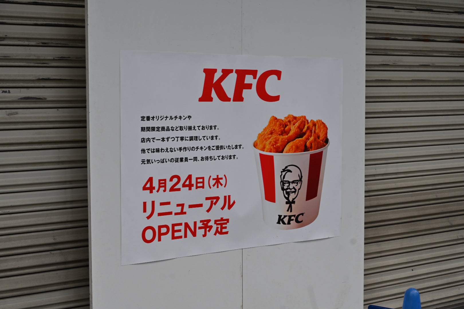 アステ川西1階のケンタッキーが4/24(木)にリニューアルするみたい。