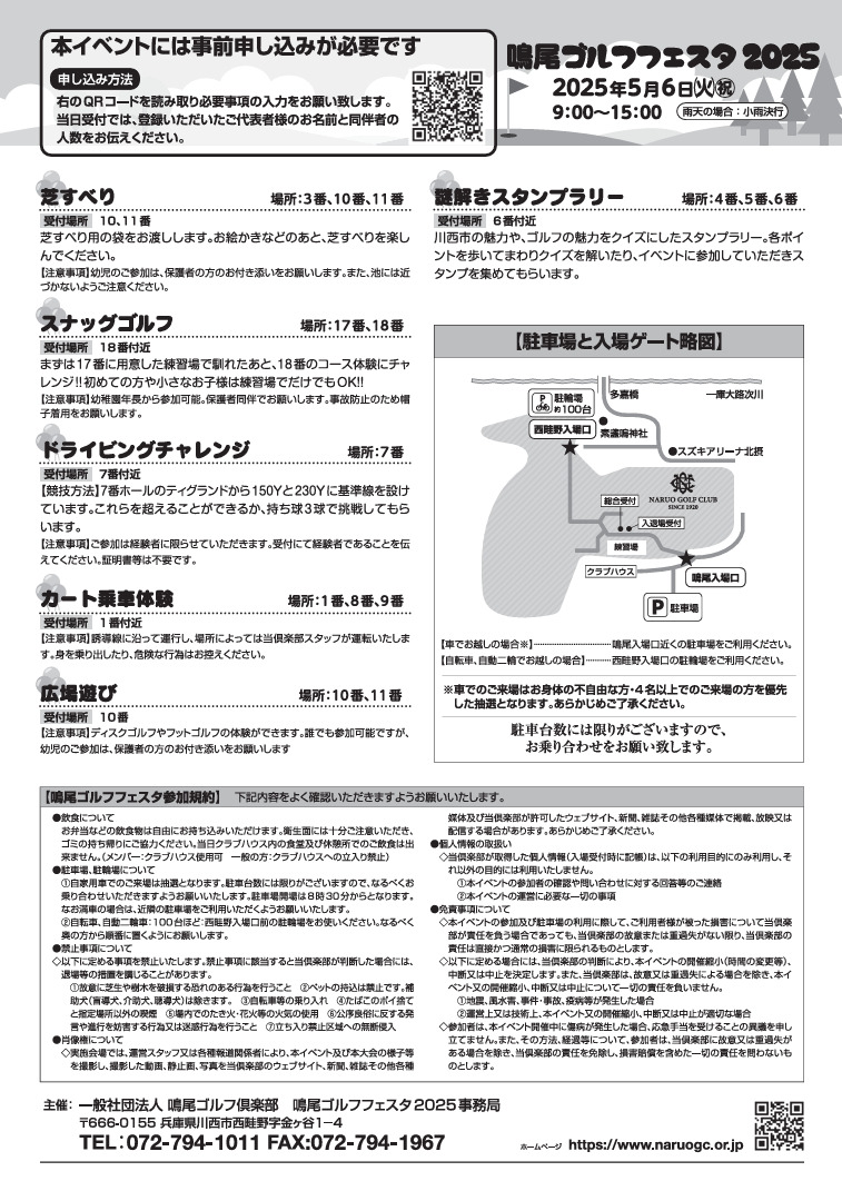 5/6(火・祝)、鳴尾ゴルフフェスタ2025が開催されるみたい。参加申し込みは4/30まで!