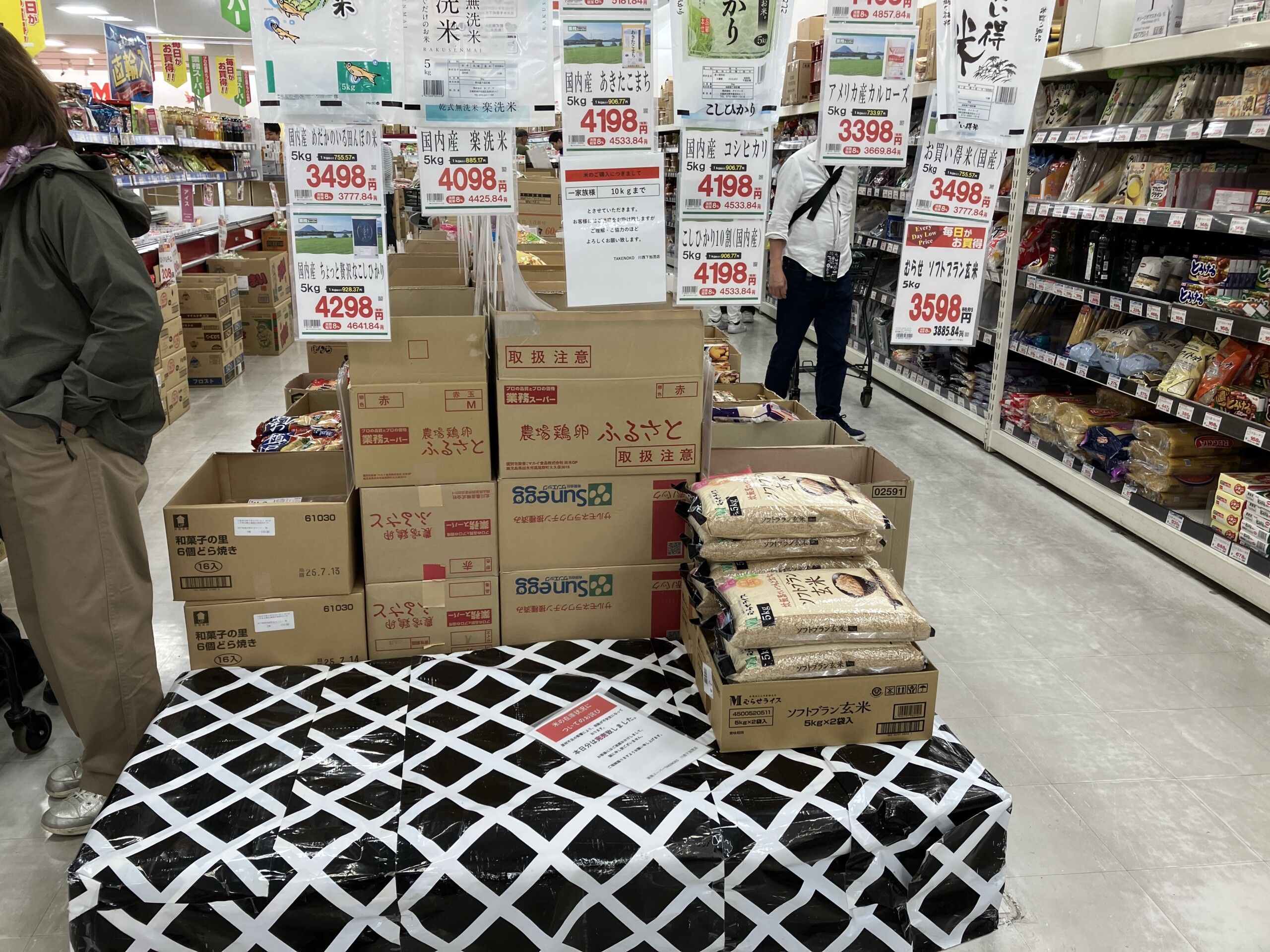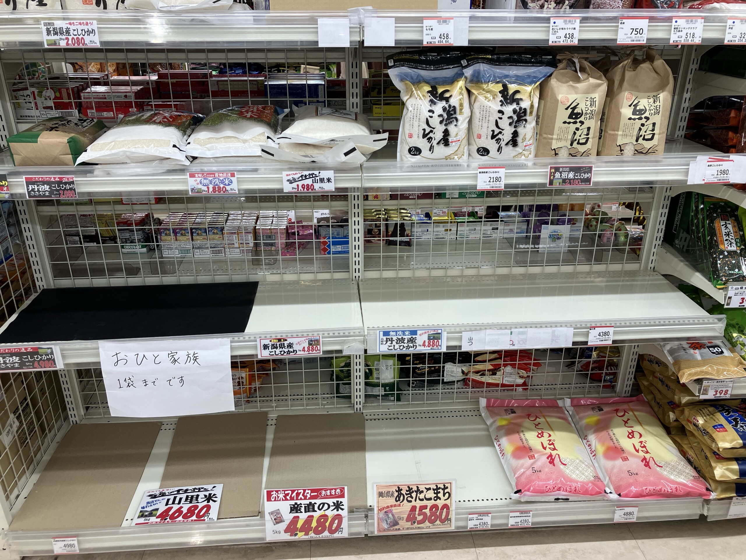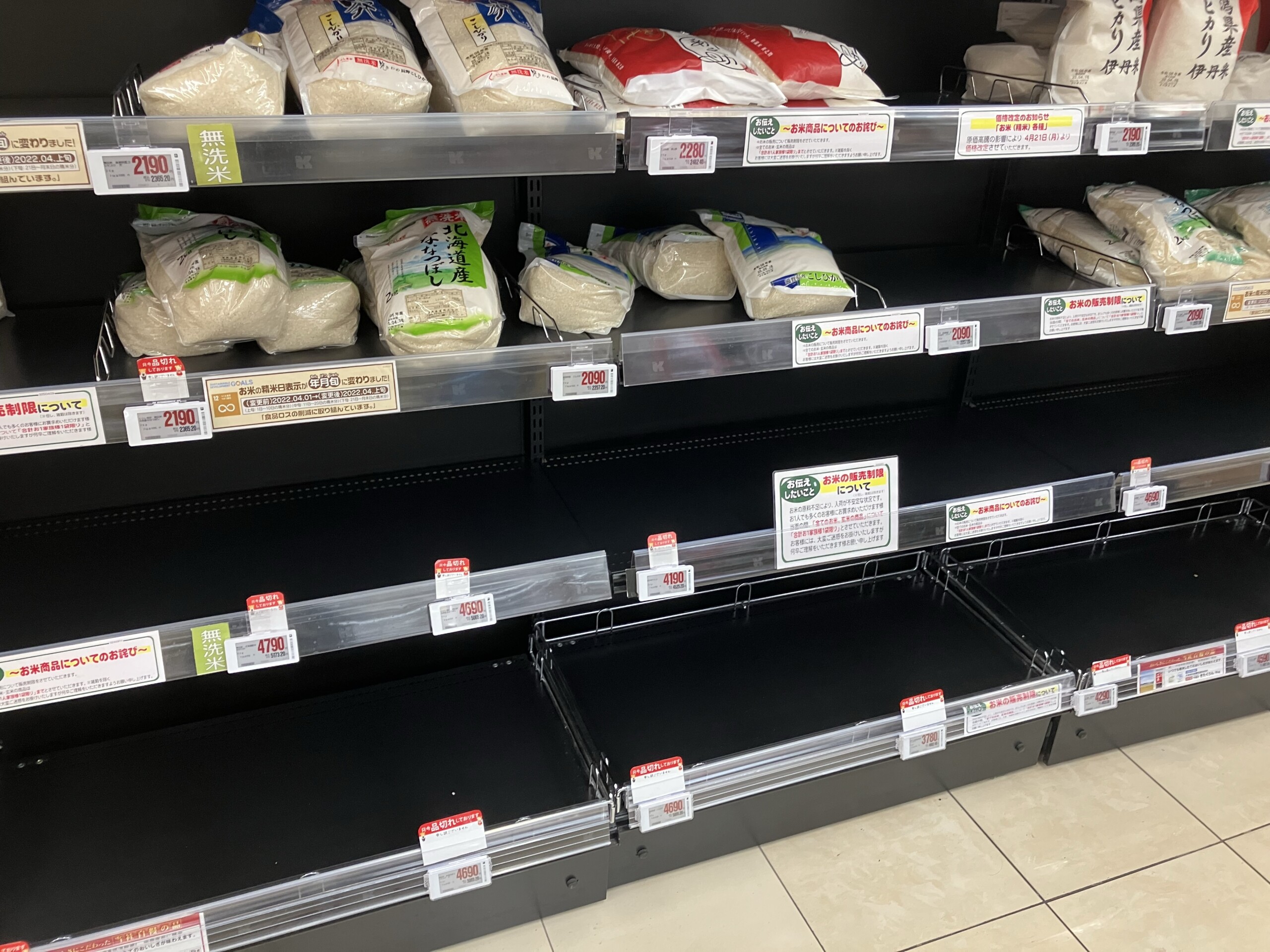 …が、店員さんによると、「お米の入荷自体がないのでお米コーナーもありません」というぶった斬りよう。