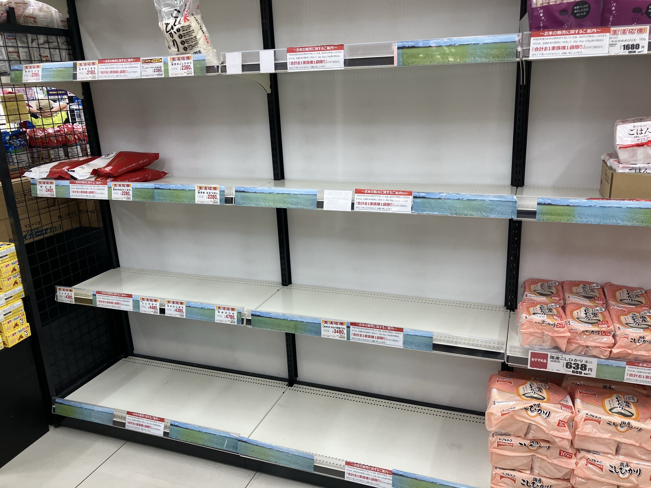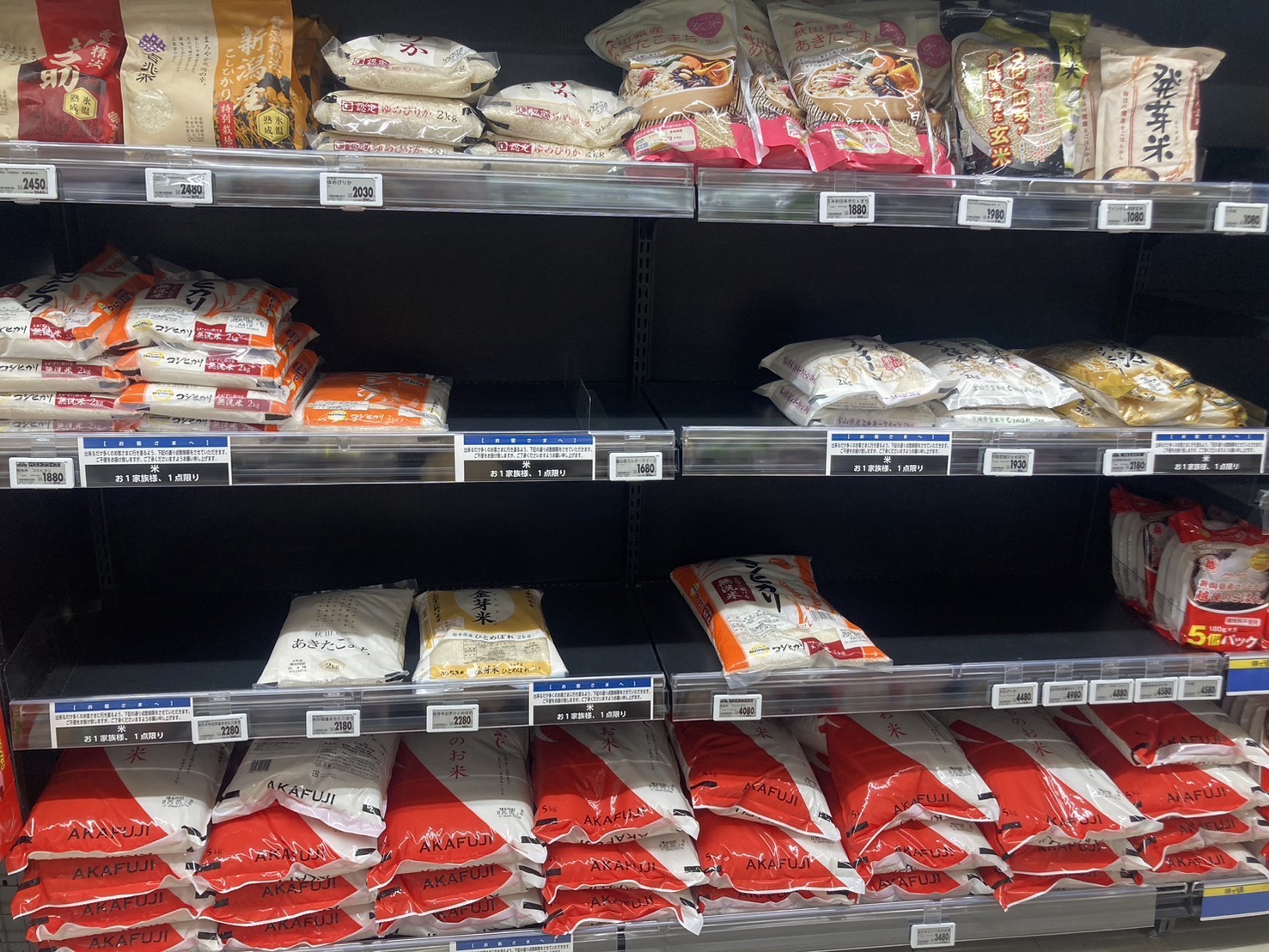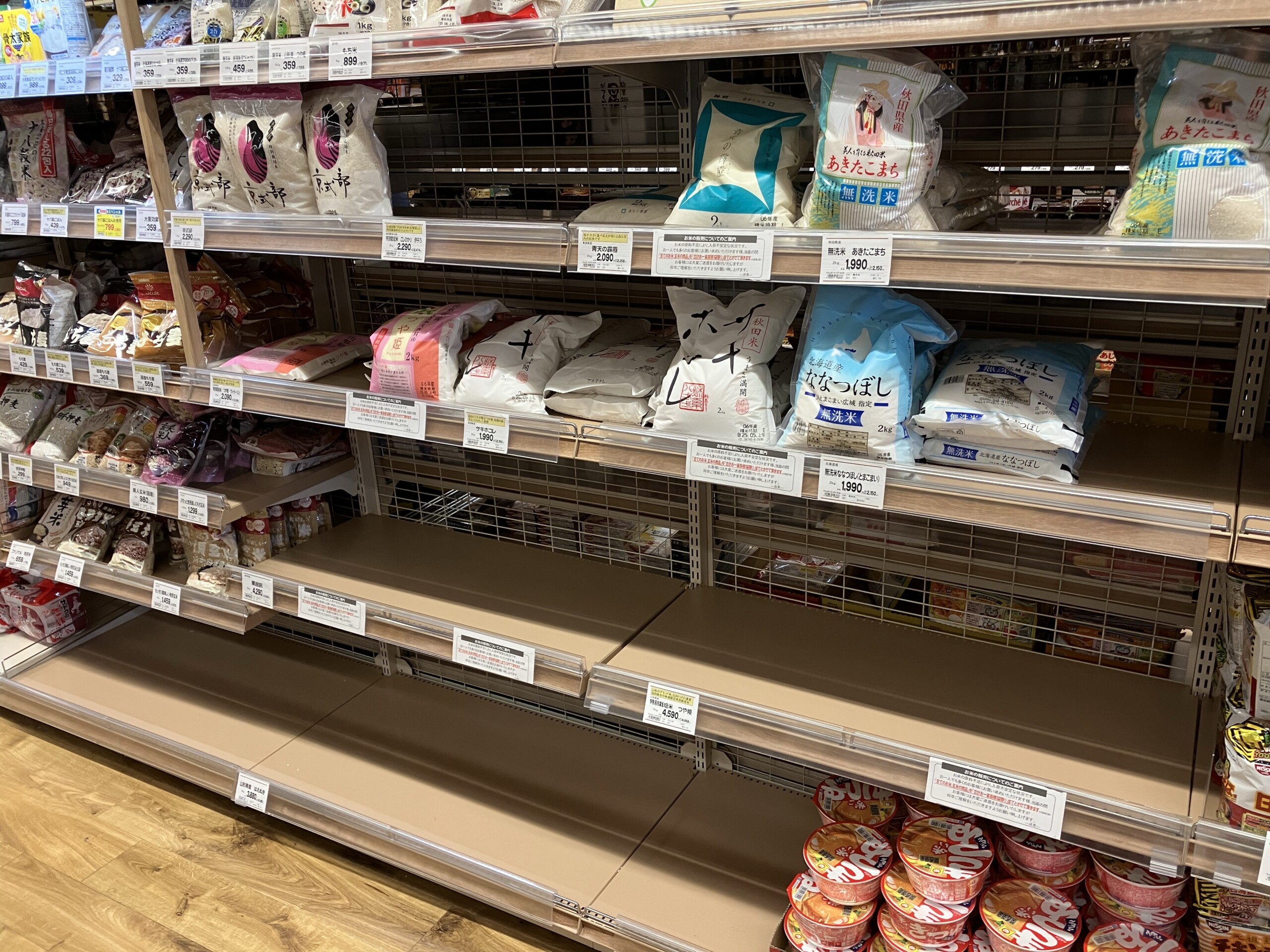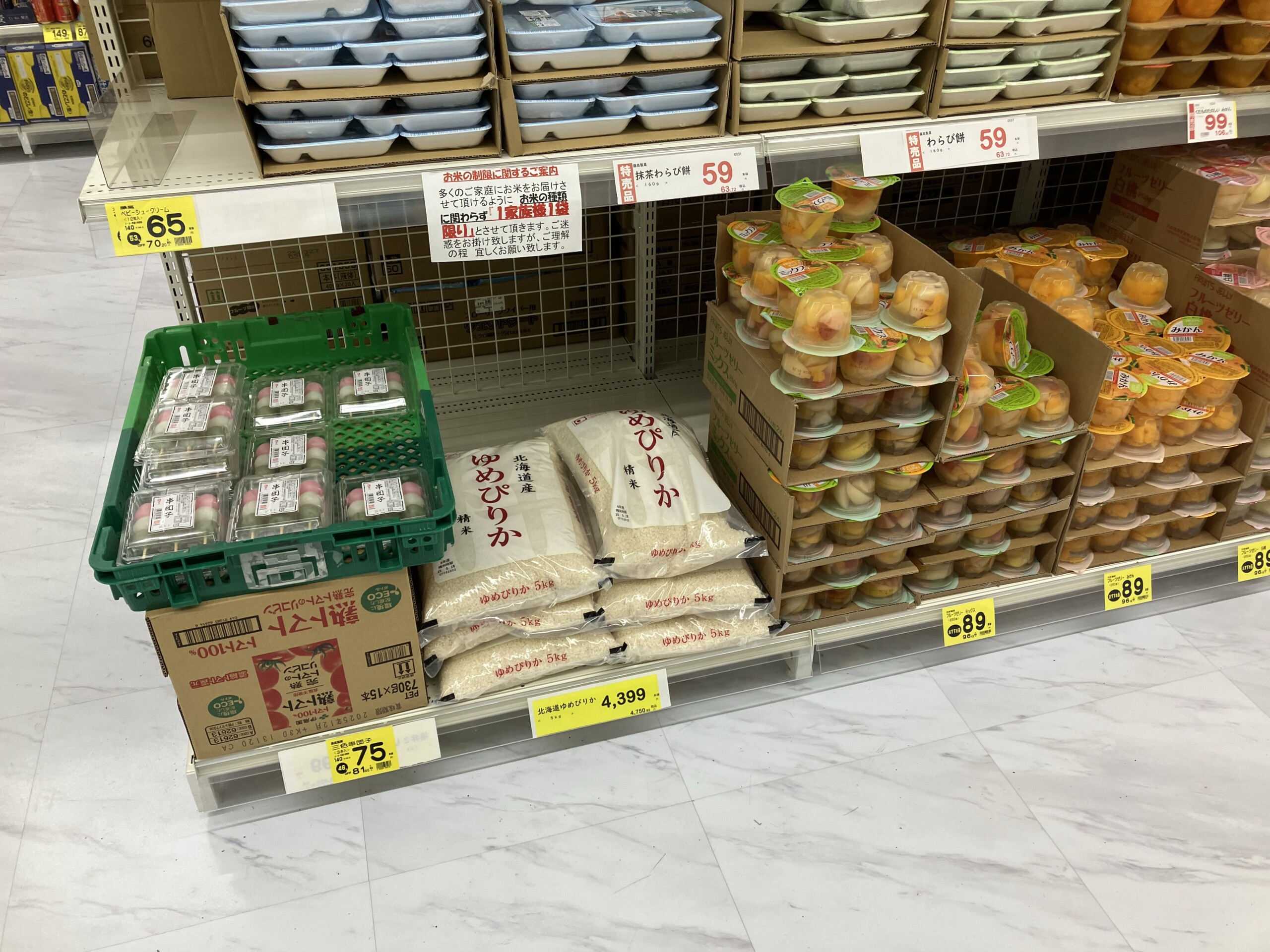 …が、店員さんによると、「お米の入荷自体がないのでお米コーナーもありません」というぶった斬りよう。