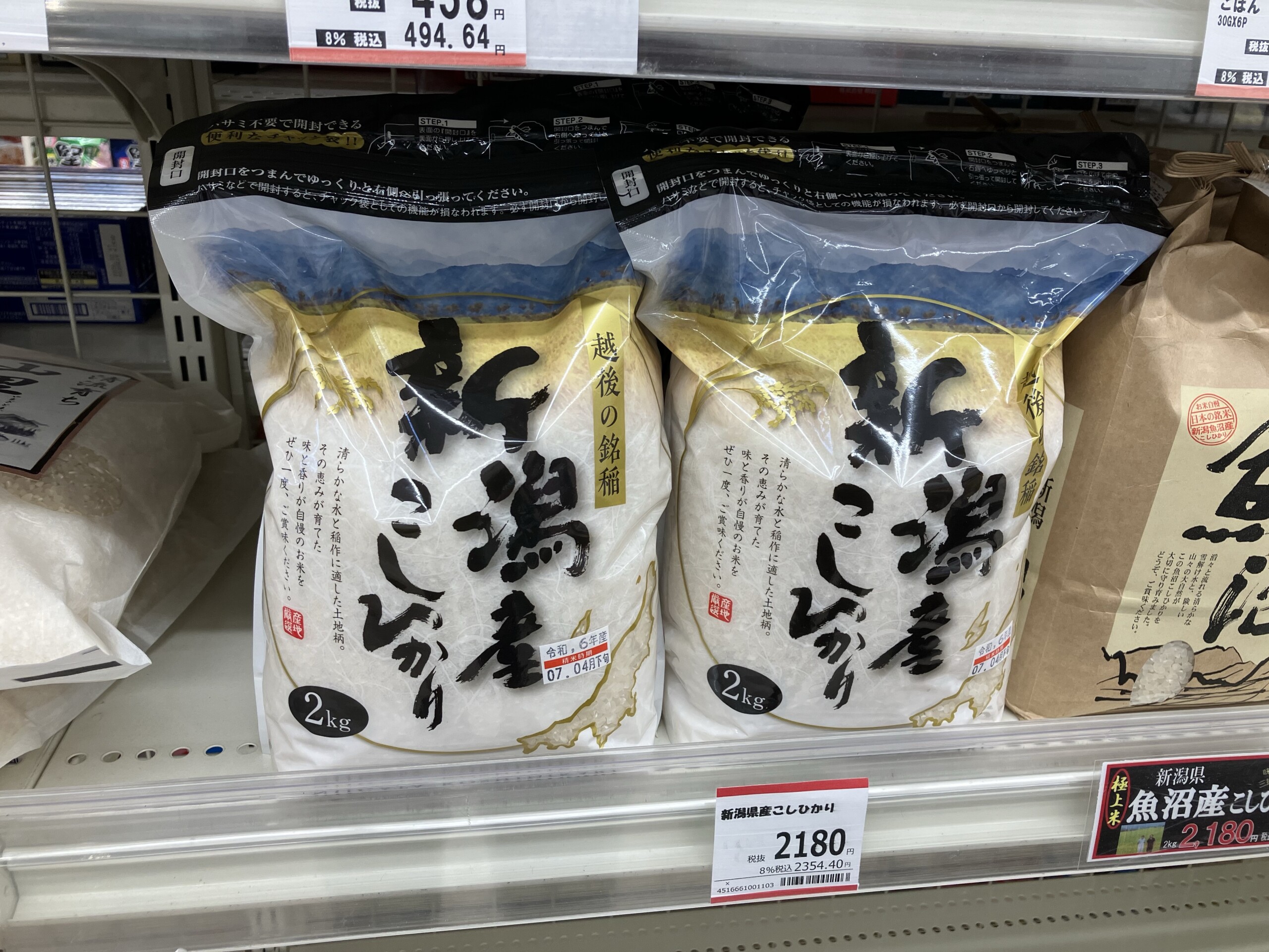 ここでも新潟県産のコシヒカリが2kg2180円で売っています。