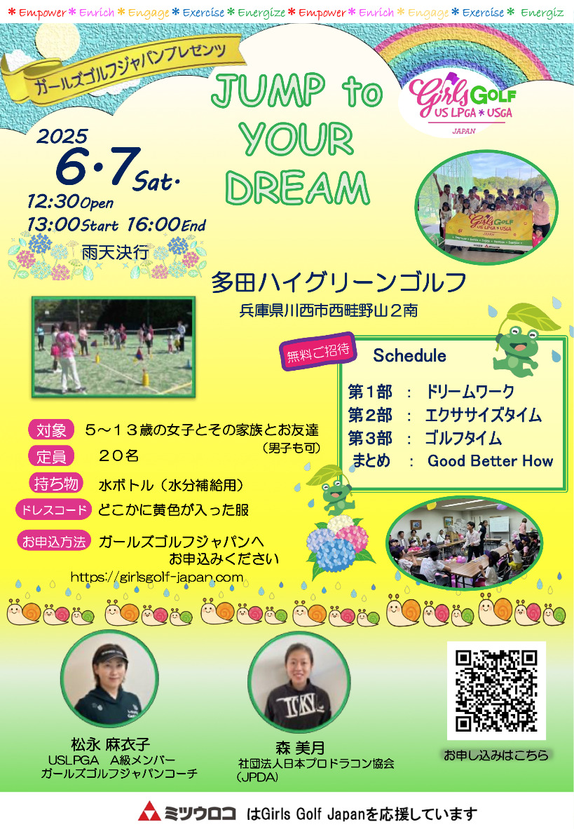 6/7(土)、多田ハイグリーンで、Girls Golf Japanプレゼンツ「Jump to Your Dream」が開催されるようです!
