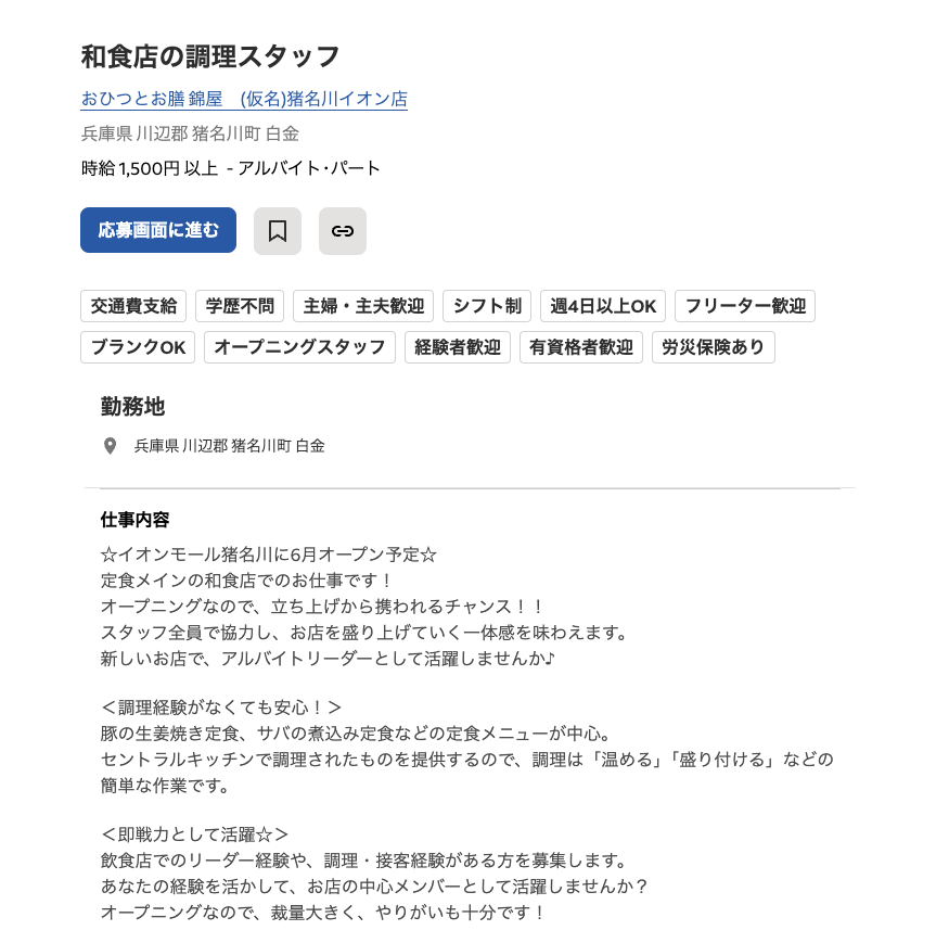インディードの求人情報によると、6月に定食メインの和食店としてオープン予定。