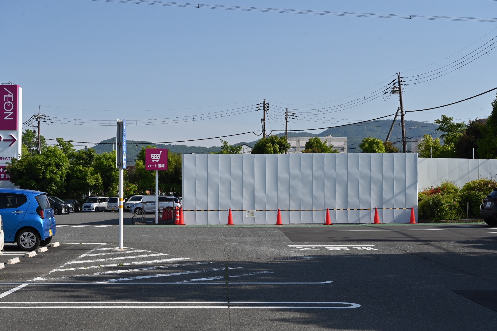 ちなみに3階の屋外駐車場に衝立ができていますが、これは今イオンでやっている外壁工事の職人さんたちの詰所になっています。