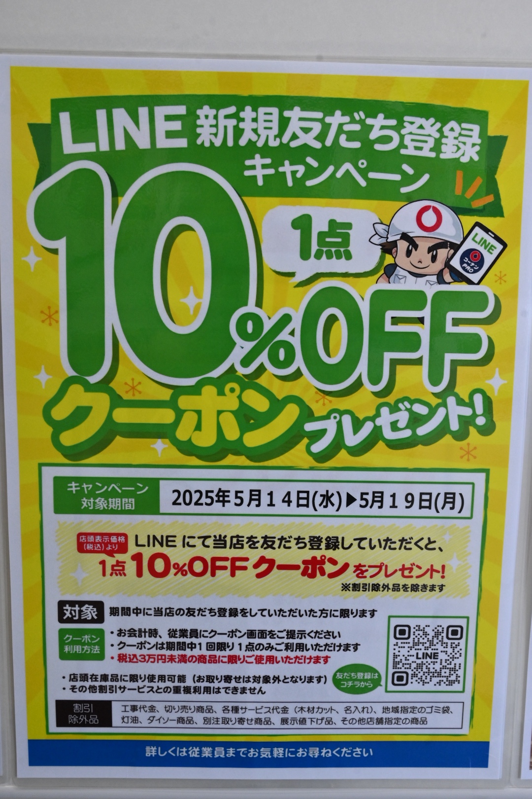 5月19日まで、LINE友だち登録で10%オフクーポンがもらえます。