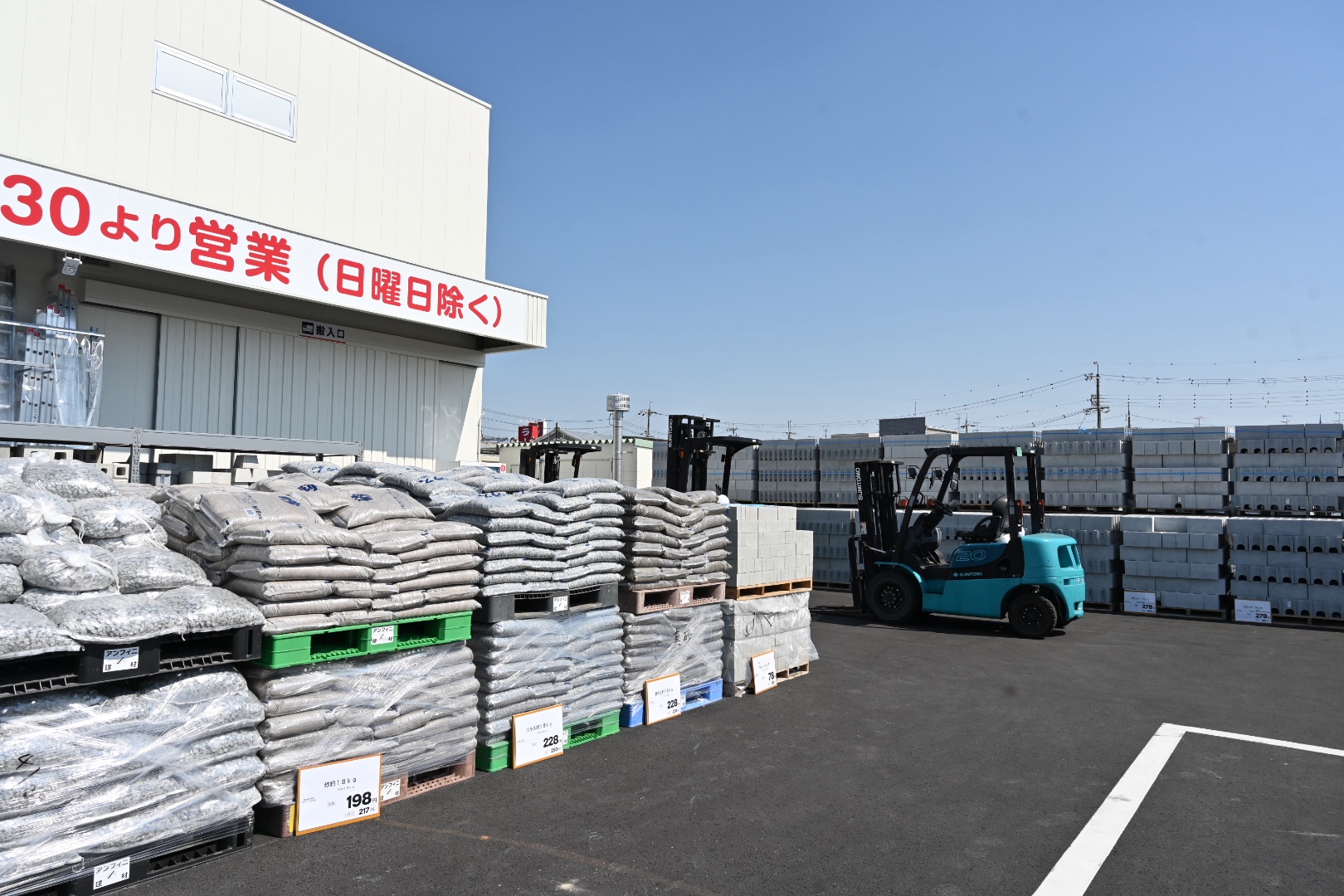 駐車場側の屋外にはブロックなどの外構に使うものがたくさん売っています。