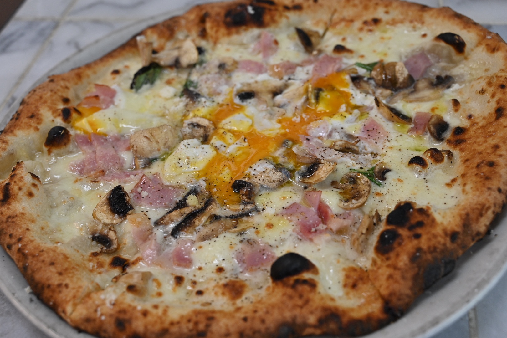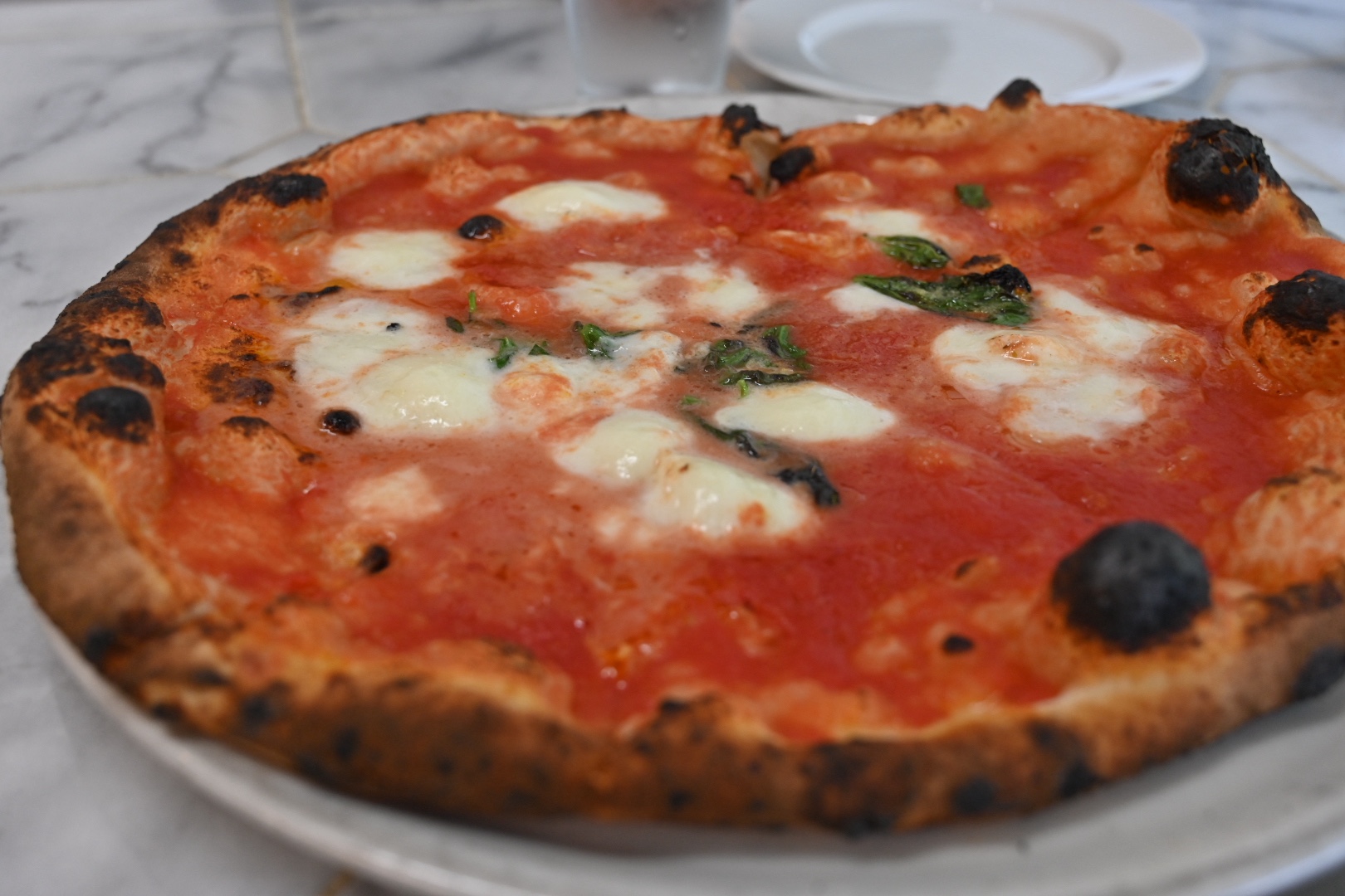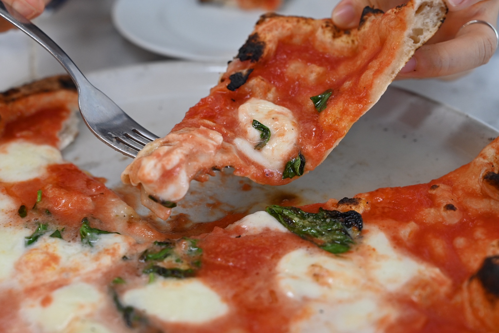 炭の焼けた匂いと、トマトソース、バジルの焼けた匂いが混ざってえも言われる香ばしさ。