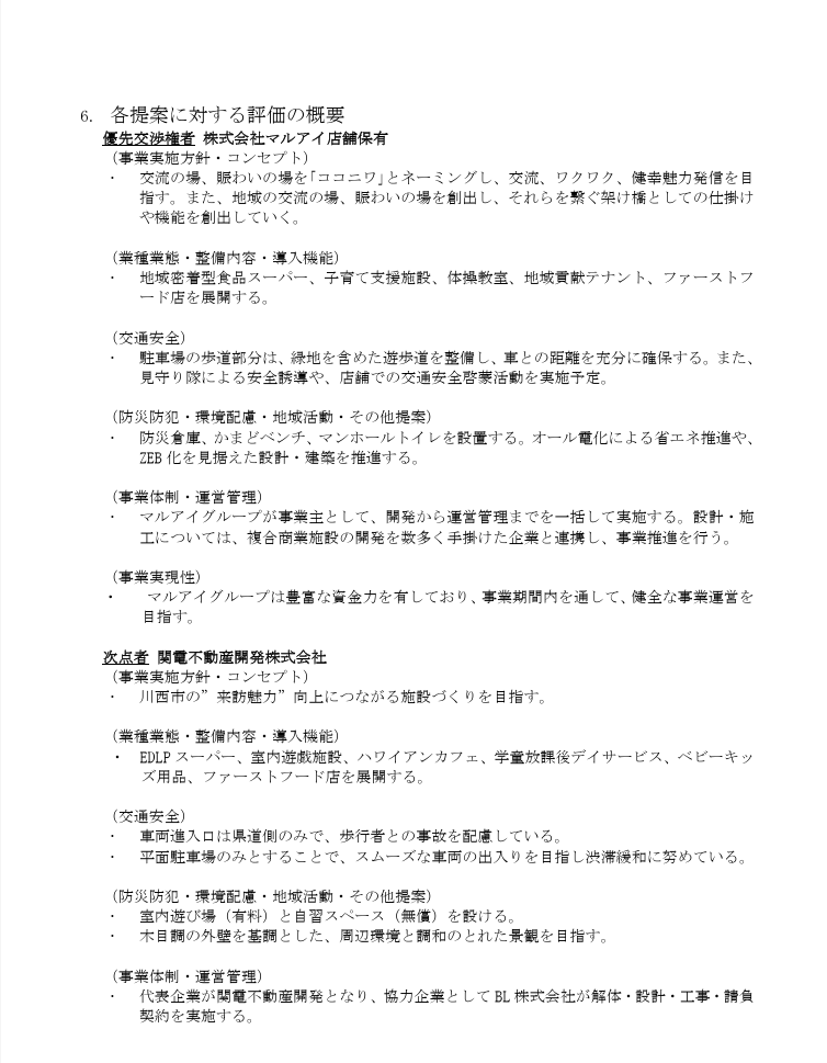 5/19に市が公表した情報によると、マルアイの提案の採用が決定。
