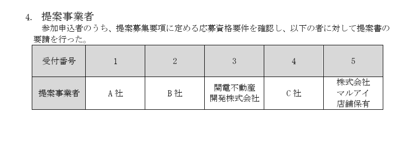 関電不動産や株式会社マルアイなどの5つの事業者が提案していました。