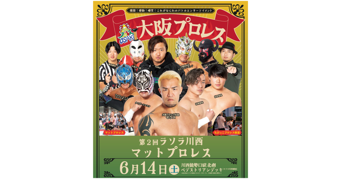 6/14(土)、川西能勢口駅北側デッキで大阪プロレス 第2回ラソラ川西マットプロレスが開催されるようです!