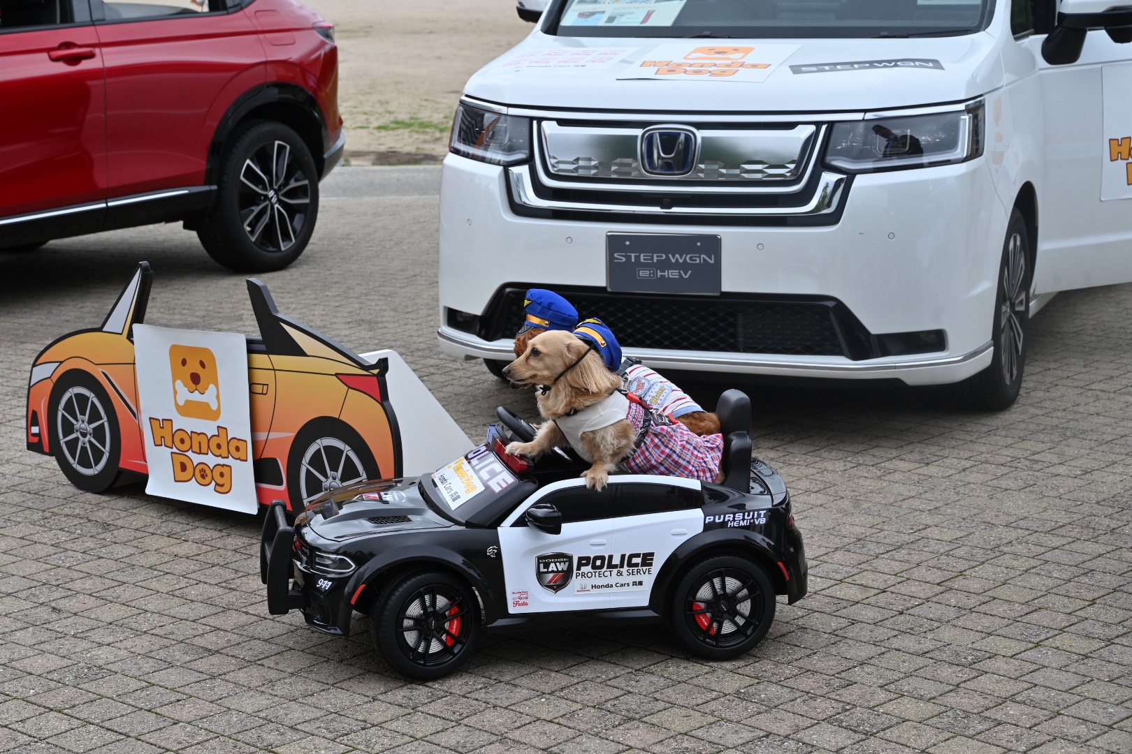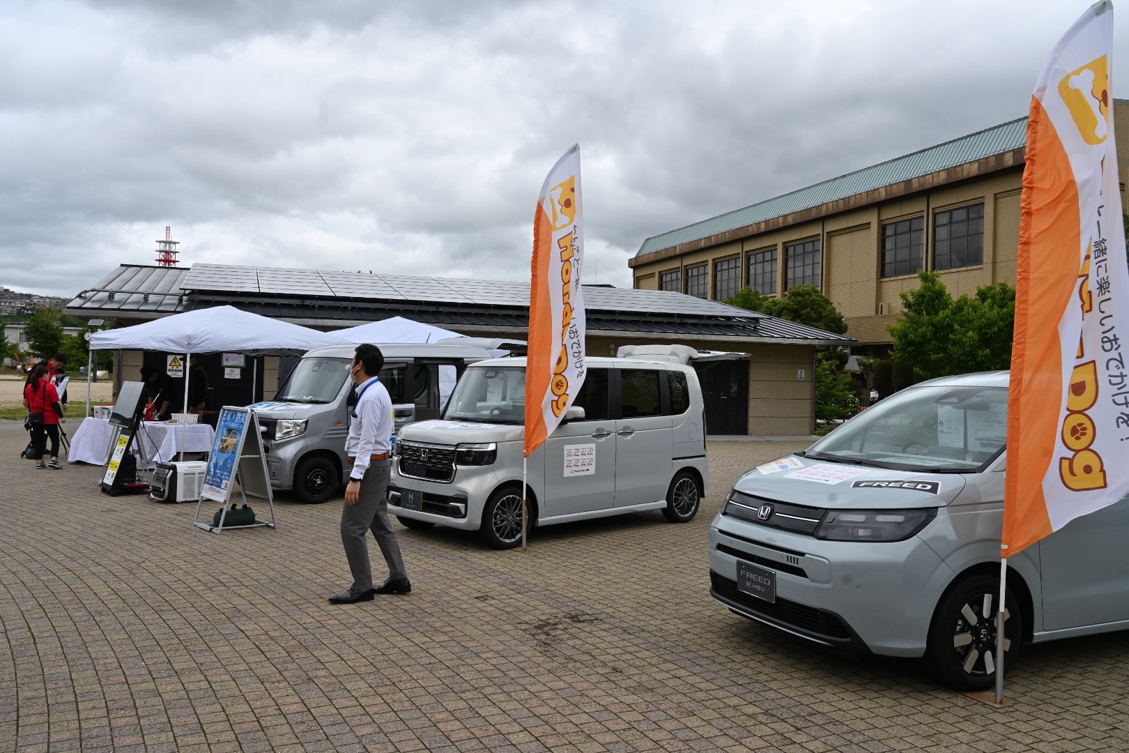 EV車両がズラーっと並んでいて、車好きのお父さんたちが「愛犬を乗せるにはどれがいいかな?」と楽しげに見ていました。