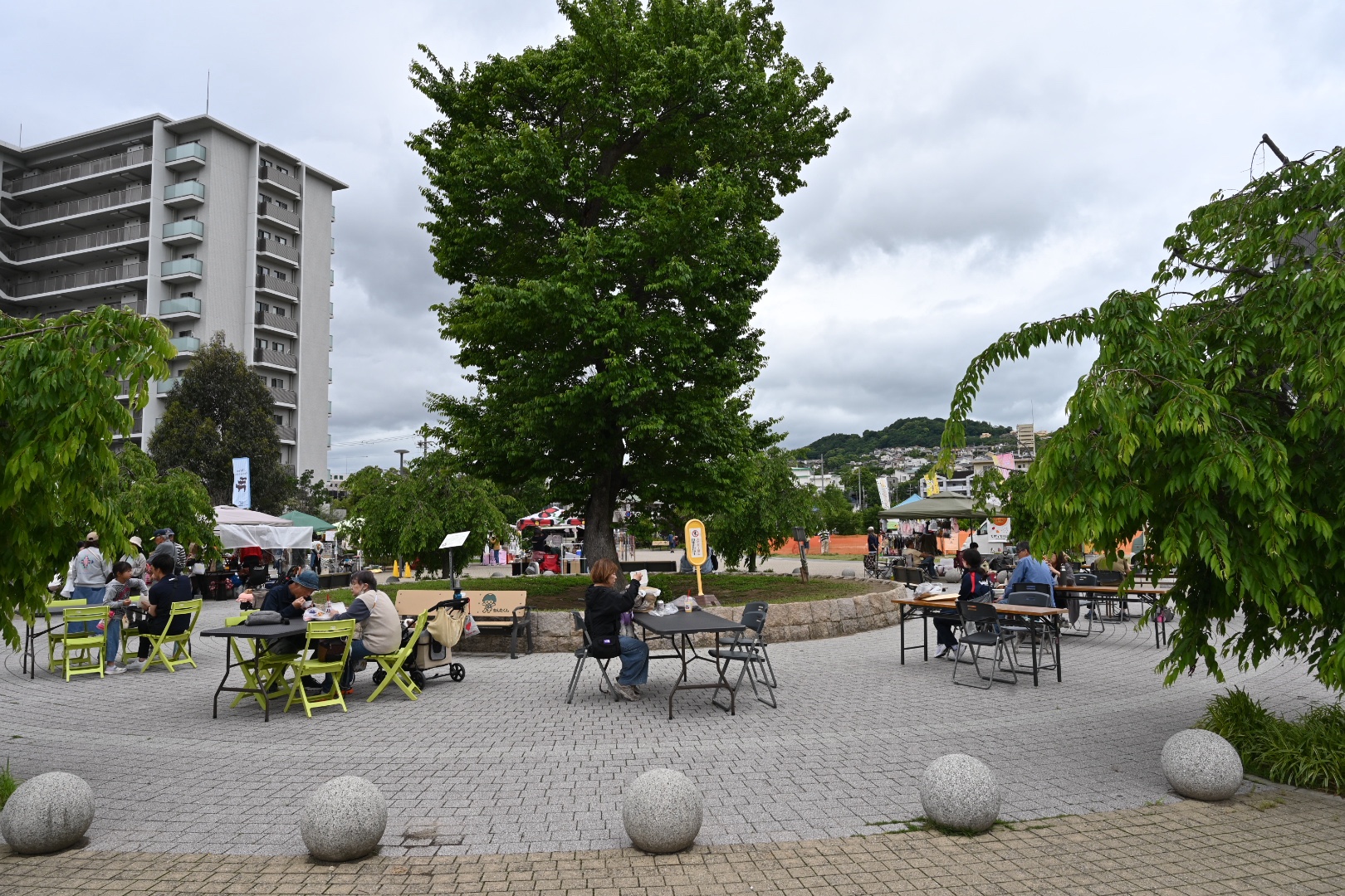 ここで食べ物を買って、会場中央の桜の木の周りにある椅子とテーブルでワンコと一緒にくつろげます。