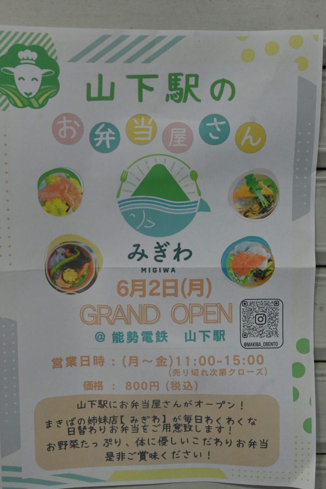6/2(月)、山下駅構内にミギワっていうお弁当屋さんができるようです!
