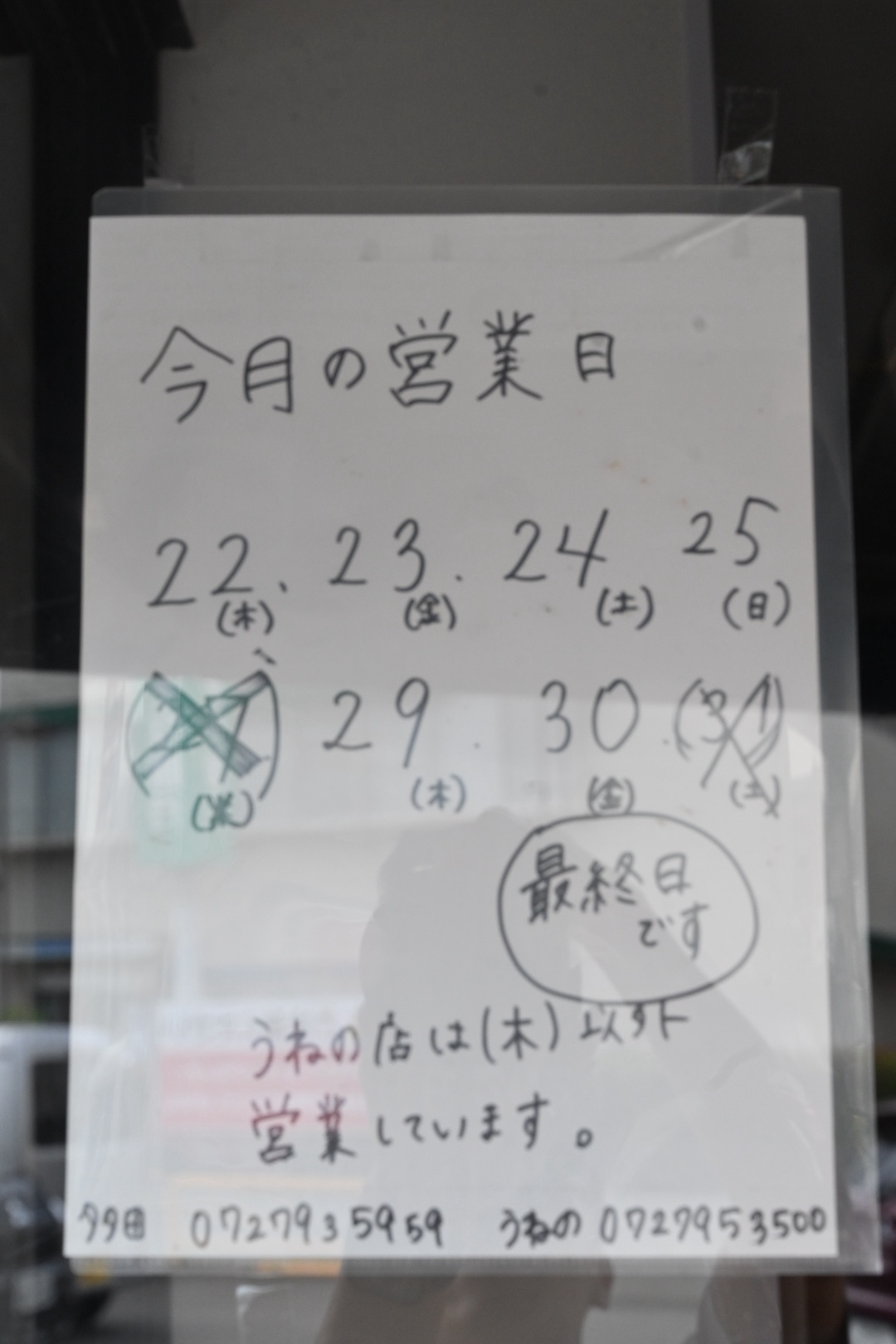こちらは店頭にあるお知らせで、5/30(金)が最終営業日のようです。