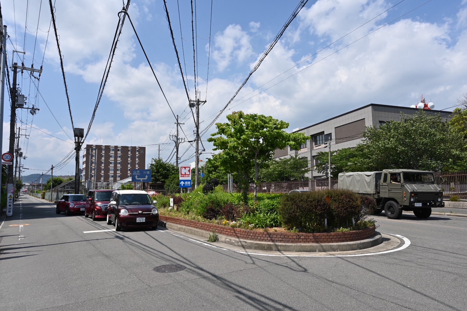 正面には自衛隊があって