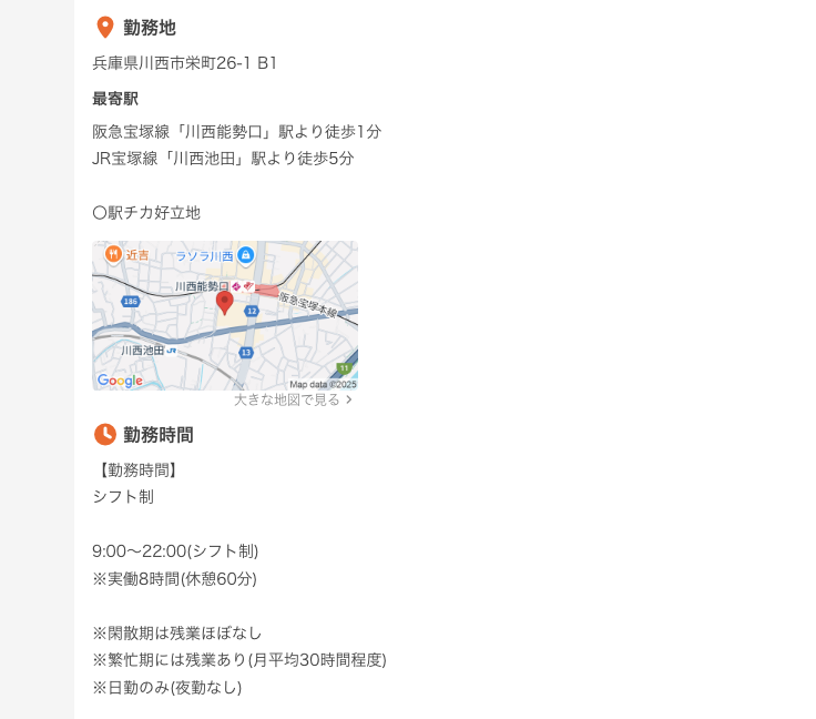 更に求人を見ていくと、勤務地が地下1階になっています。