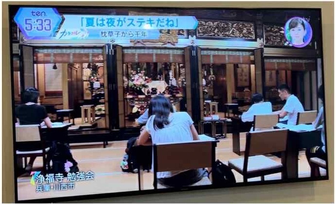 夜のお寺で宿題や勉強をするので、とても集中できると好評。