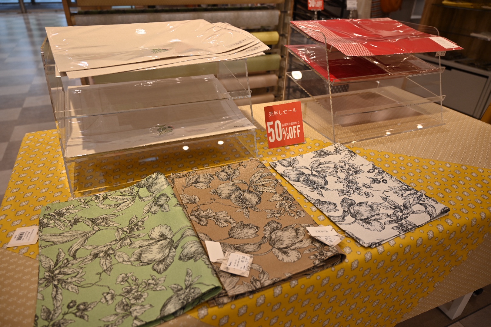 華やかなテーブルファブリックやキッチン映えするアイテムが揃うお店で、4月18日にオープンしたばかりでした。