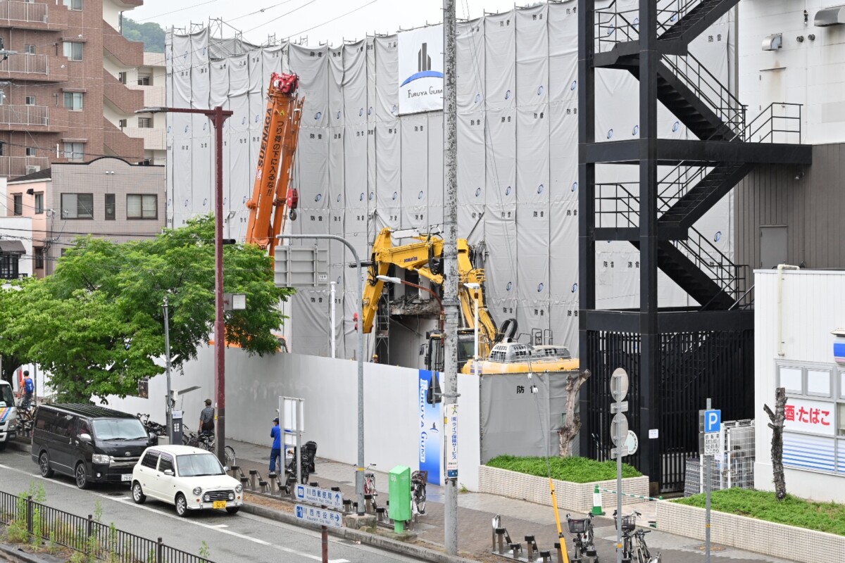 建物の解体が終われば、新たなマンションが建つまで、駅前の空がちょっとだけ広く感じられる景色が広がります。