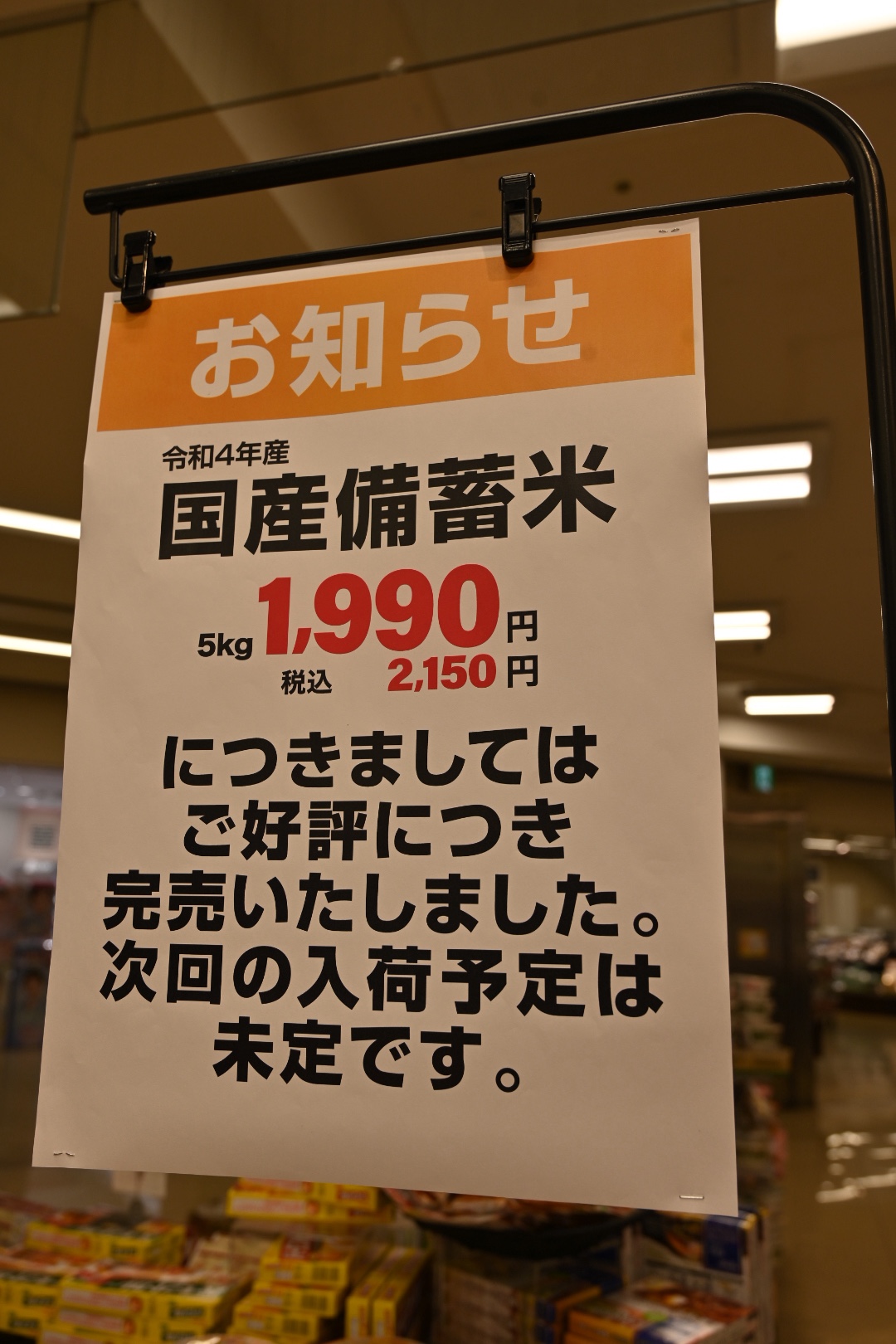 ちなみに、備蓄米は入荷していたようですが既に売り切れていました。