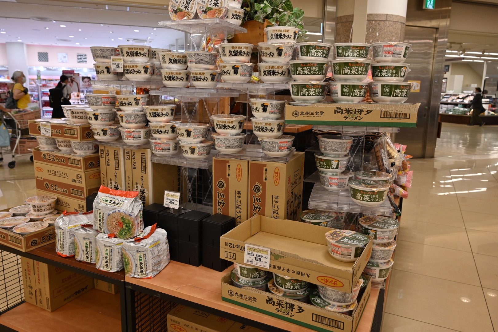 お米が買えなかった人のために、カップ麺もすぐそばに置いてあるという徹底ぶり。
