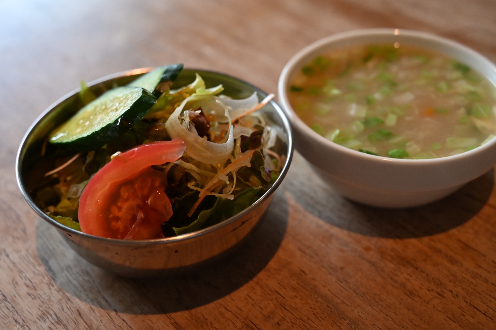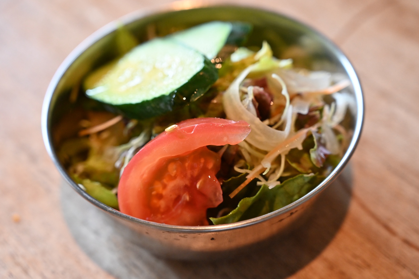 インドネパール料理といえば、サラダにかかったオレンジのドレッシングが頭に浮かぶ人も多いと思いますが、Few.のサラダには違うドレッシングがかかっています。