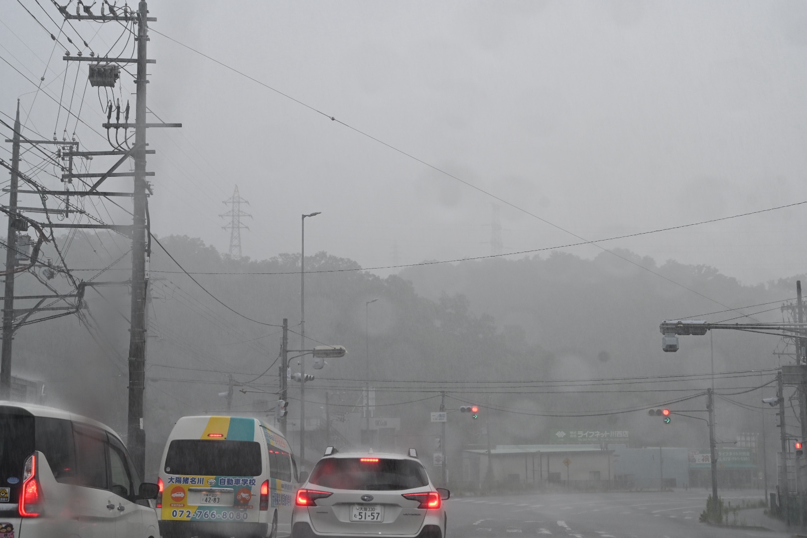 新名神川西ICの近くを車で走らせていたら、急に大雨が!