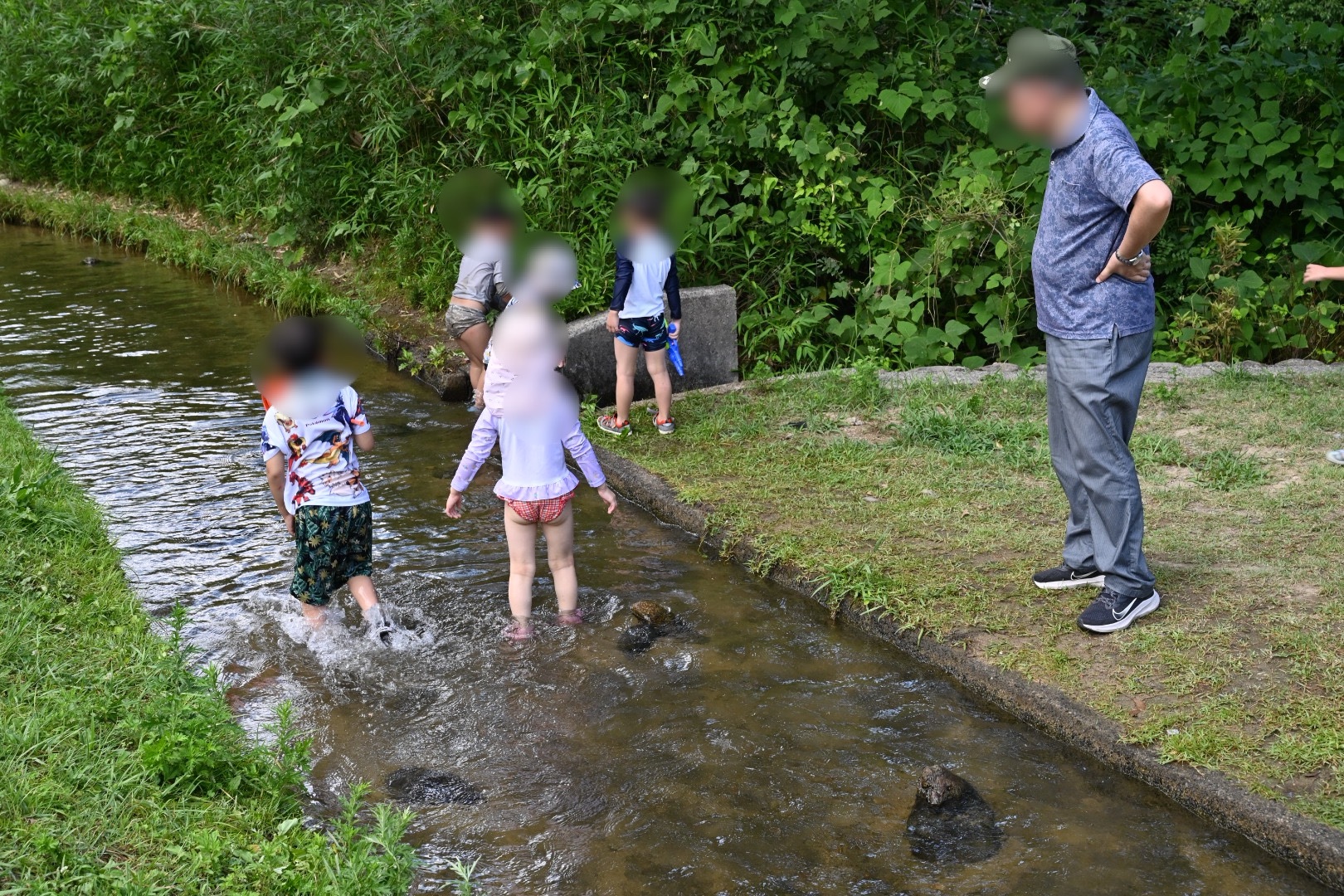 川の手前の小川は小さい子が遊ぶのにピッタリで、ザリガニやら小魚を捕って楽しむ子供が楽しそうです。