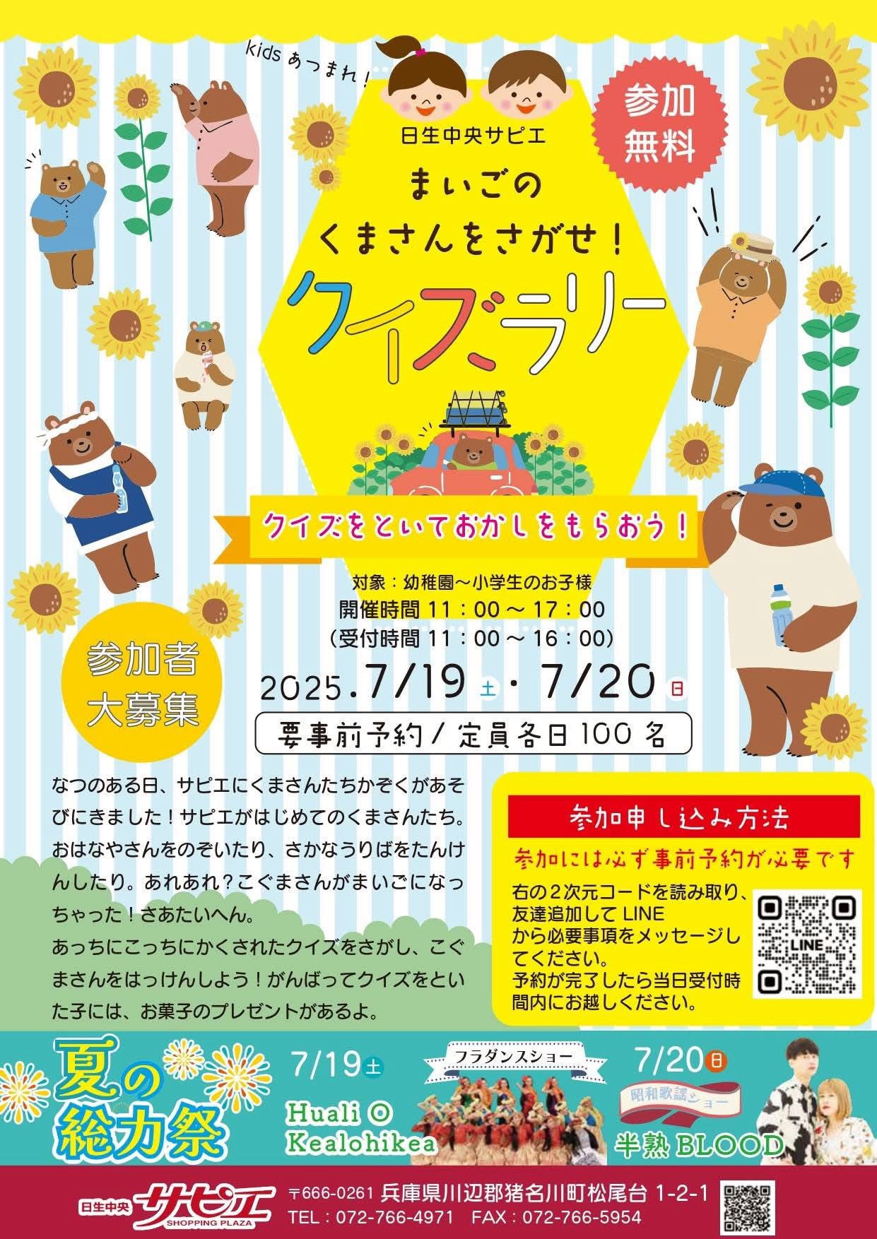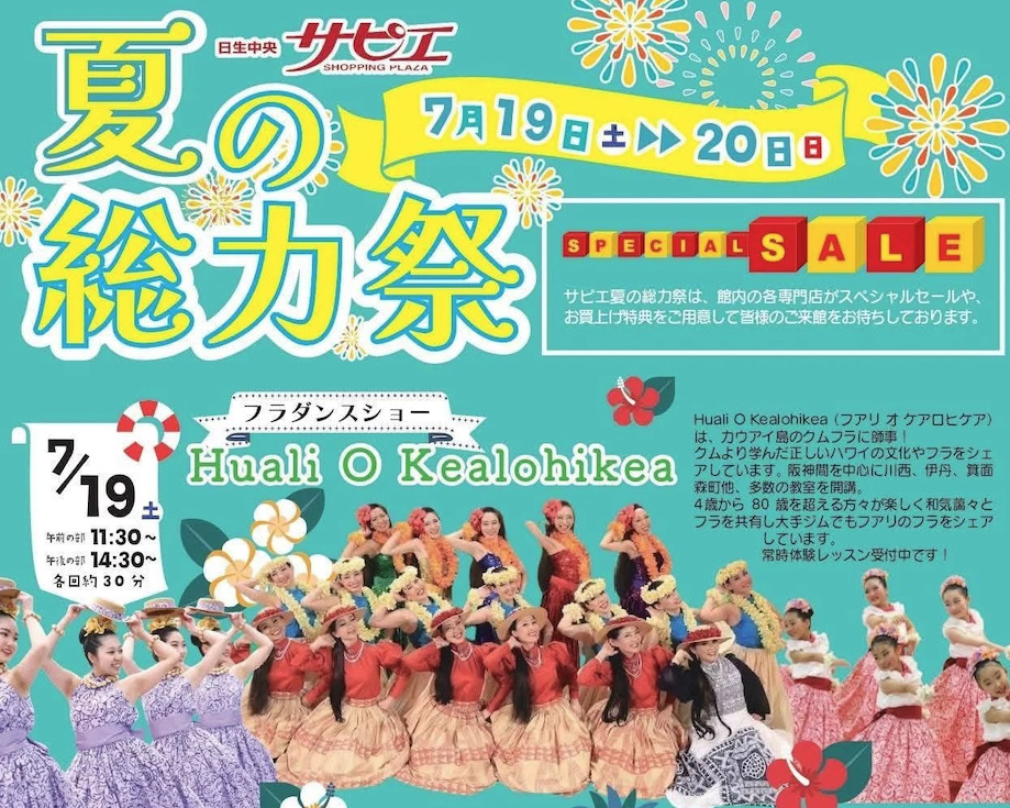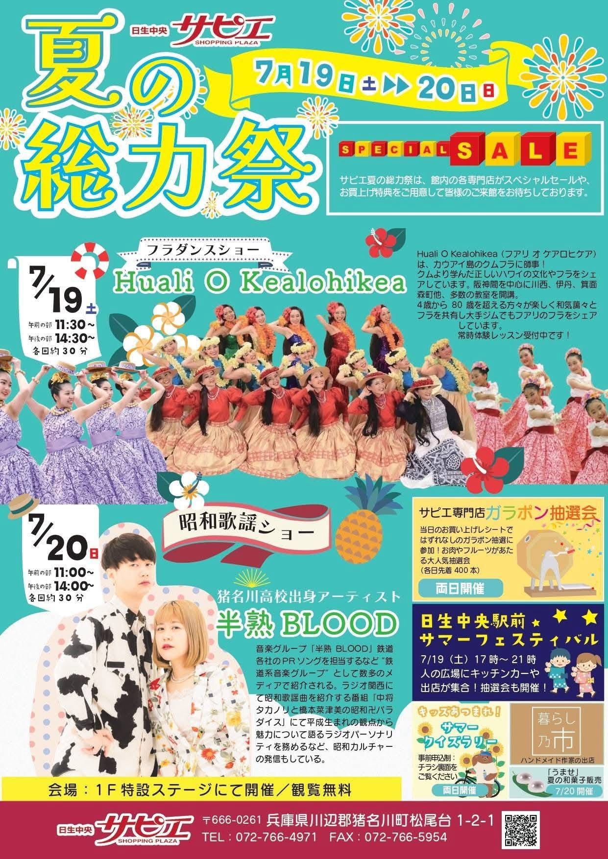 7/19(土)20(日)、日生中央サピエで夏の感謝祭が開催されるようです!