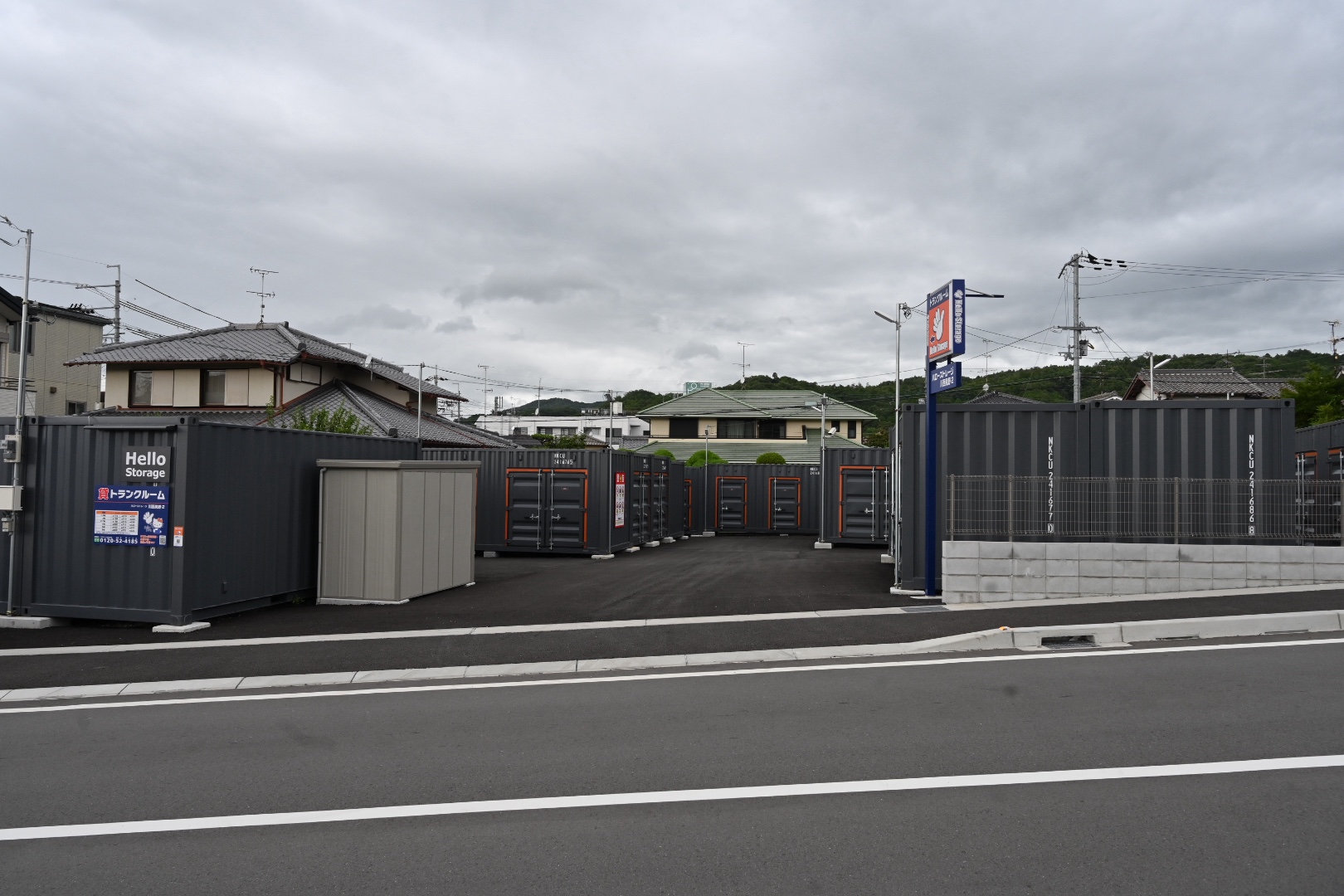 ここではずっと道路拡張工事をしていましたが、その工事の終わったエリアにハローストレージという貸し倉庫ができています。