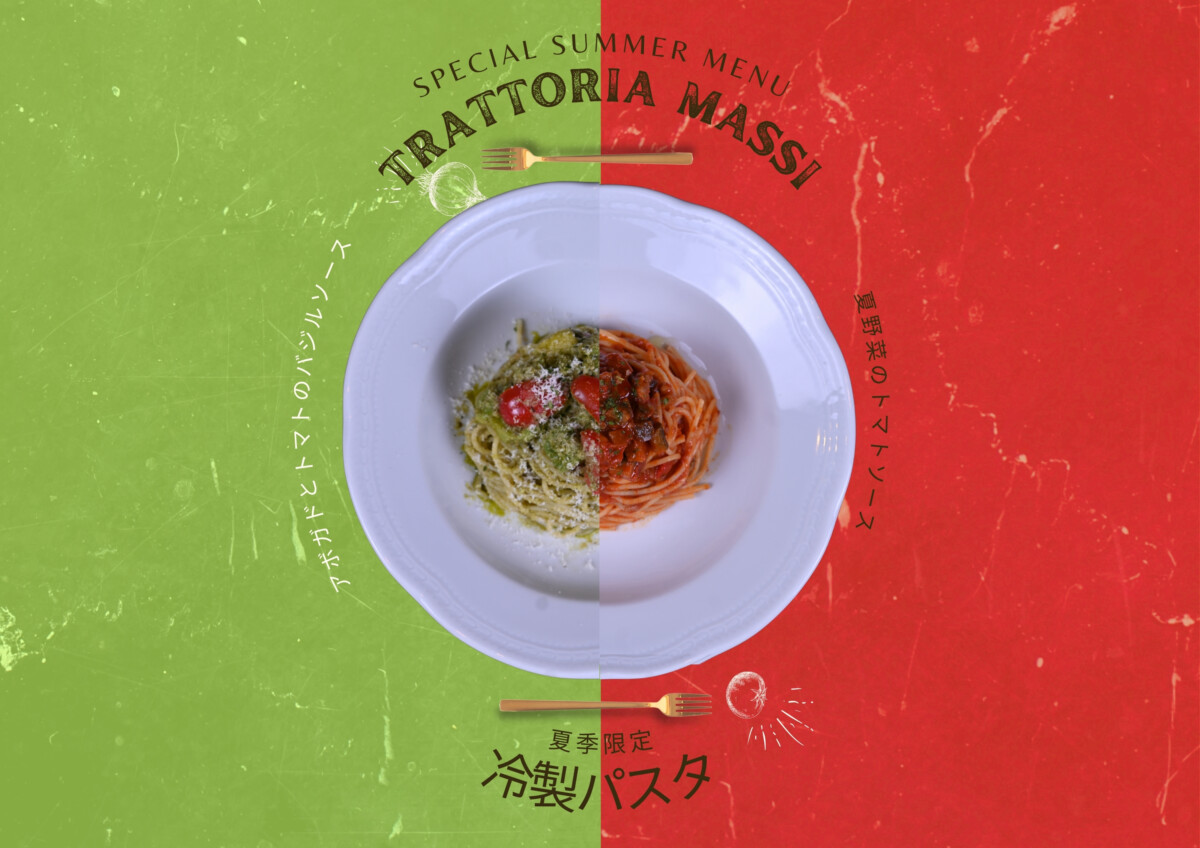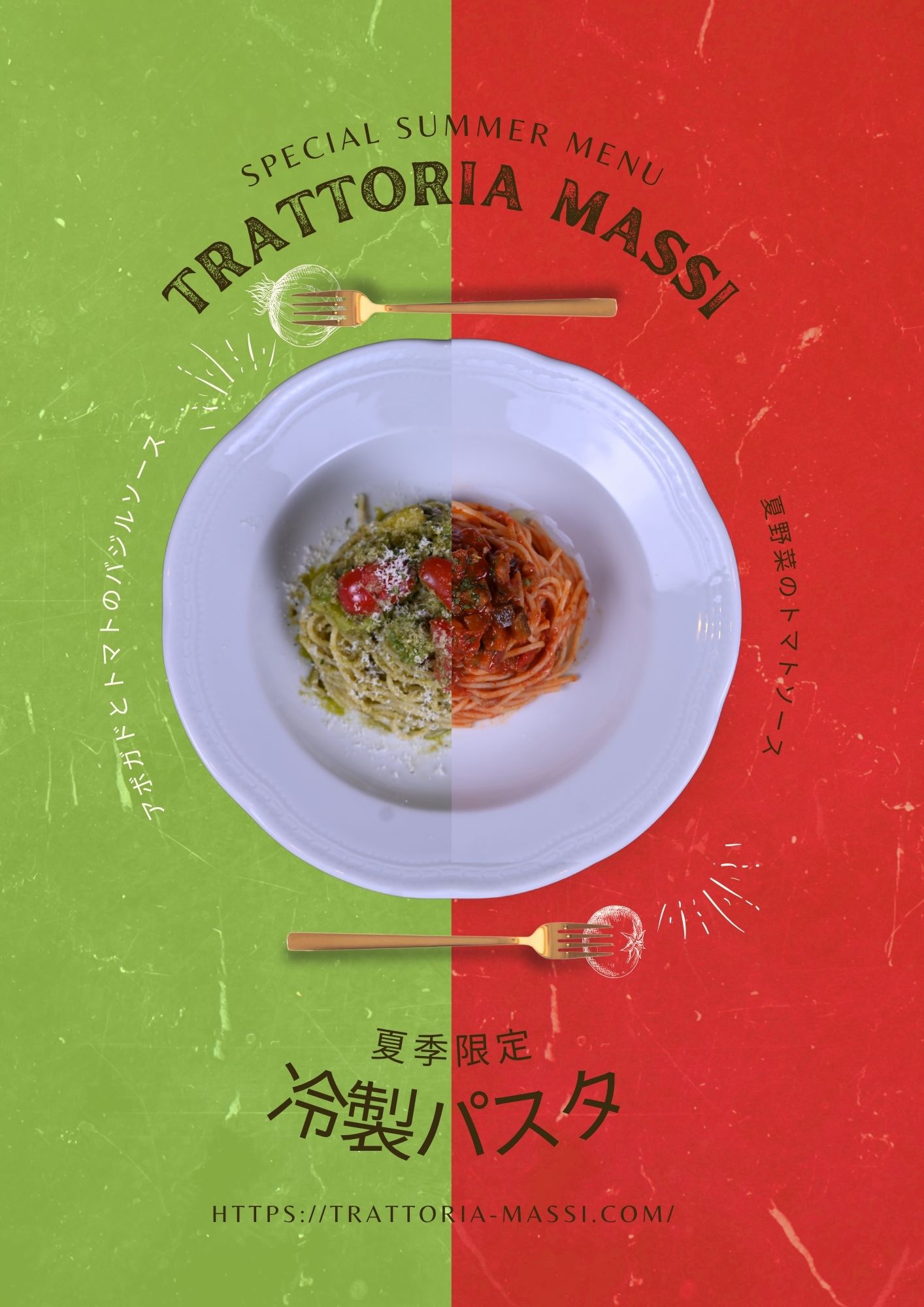 淡路牛メインのコースが大人気のTrattoria Massiが、夏季限定の冷製パスタを夏休み限定で販売。