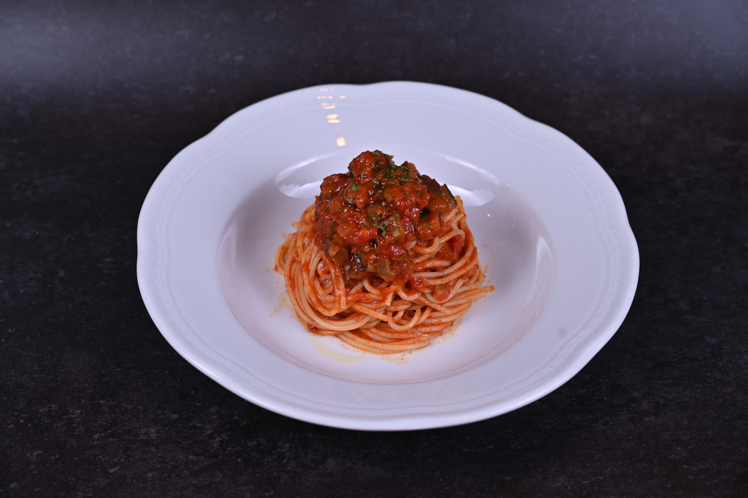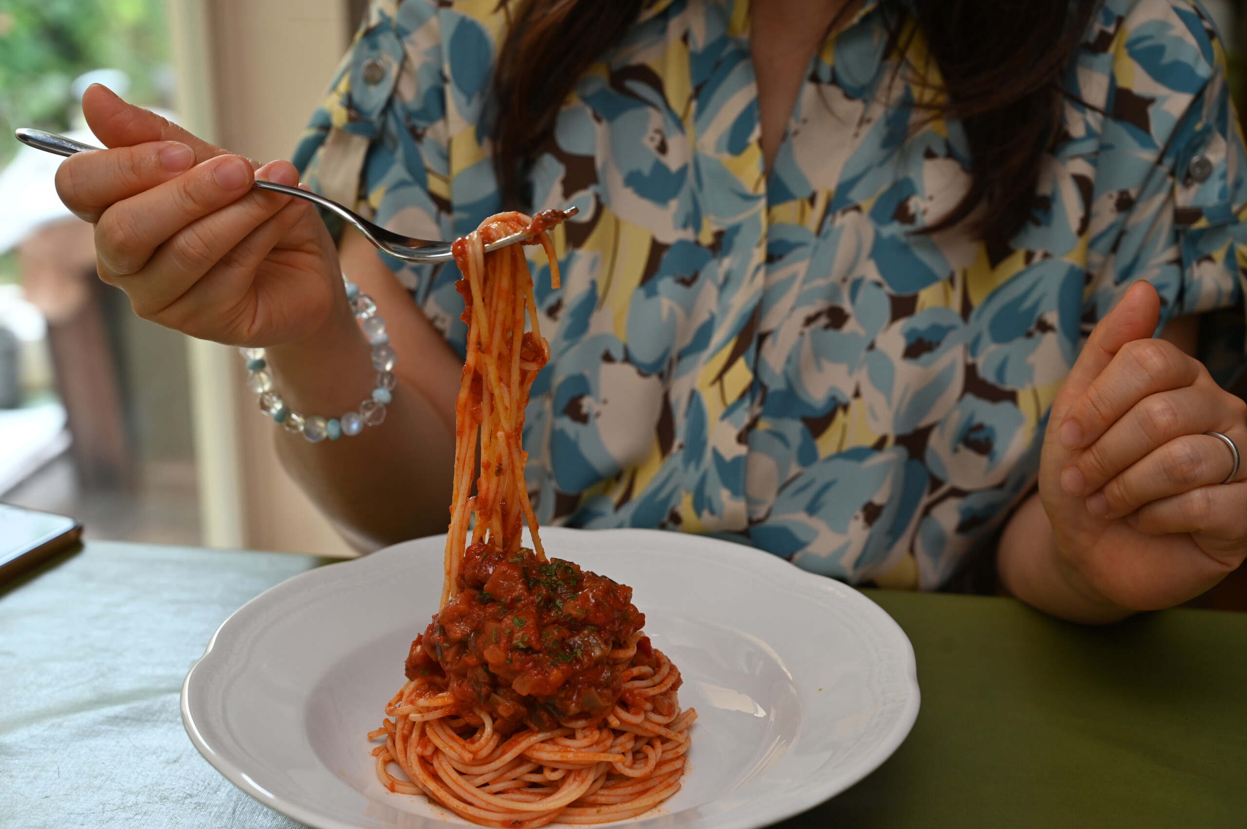 濃厚なトマトソースに、ナスのひんやりした感触も口の中で気持ちよく引き立ちます。
