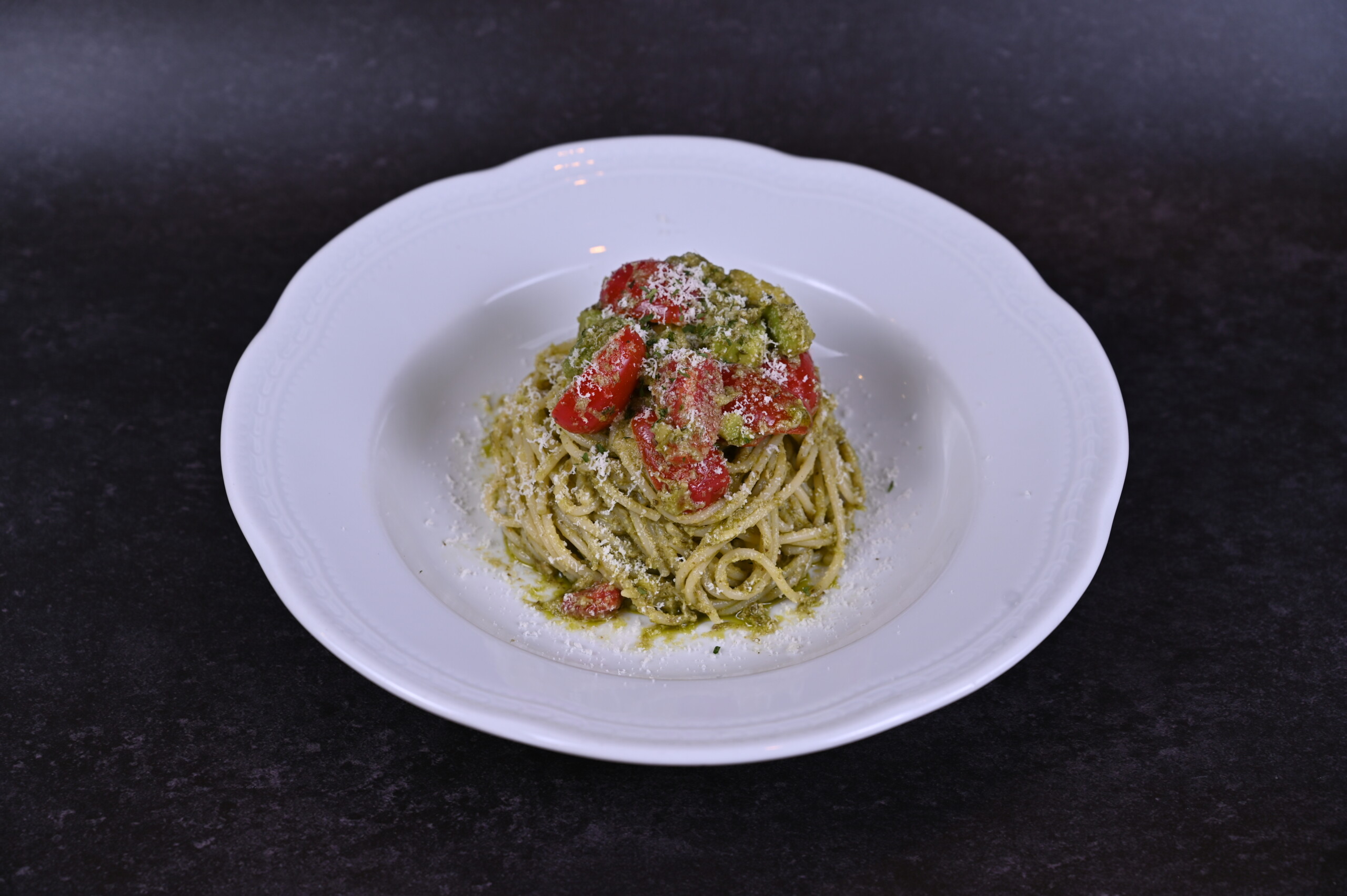 バジルソースのザラッとした舌触りに、ミニトマトの果肉がジューシーさをプラスした夏らしい一品で、連日続く暑さを癒してくれます♪