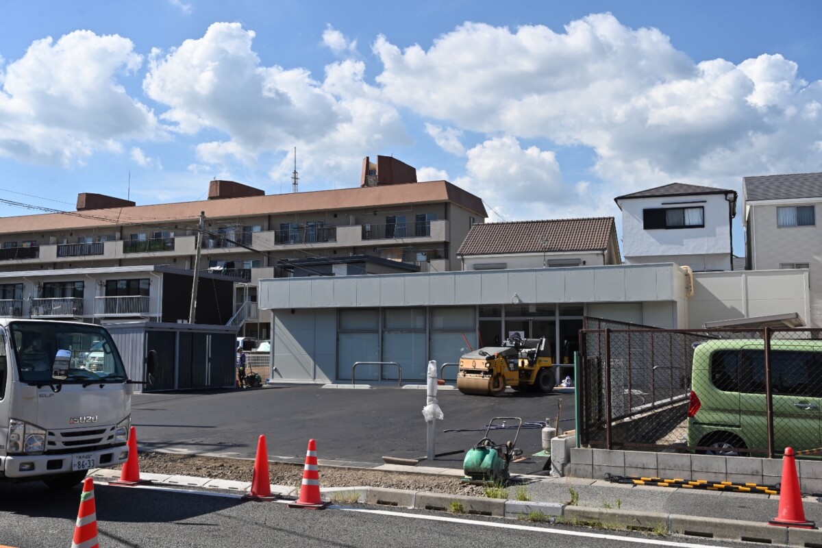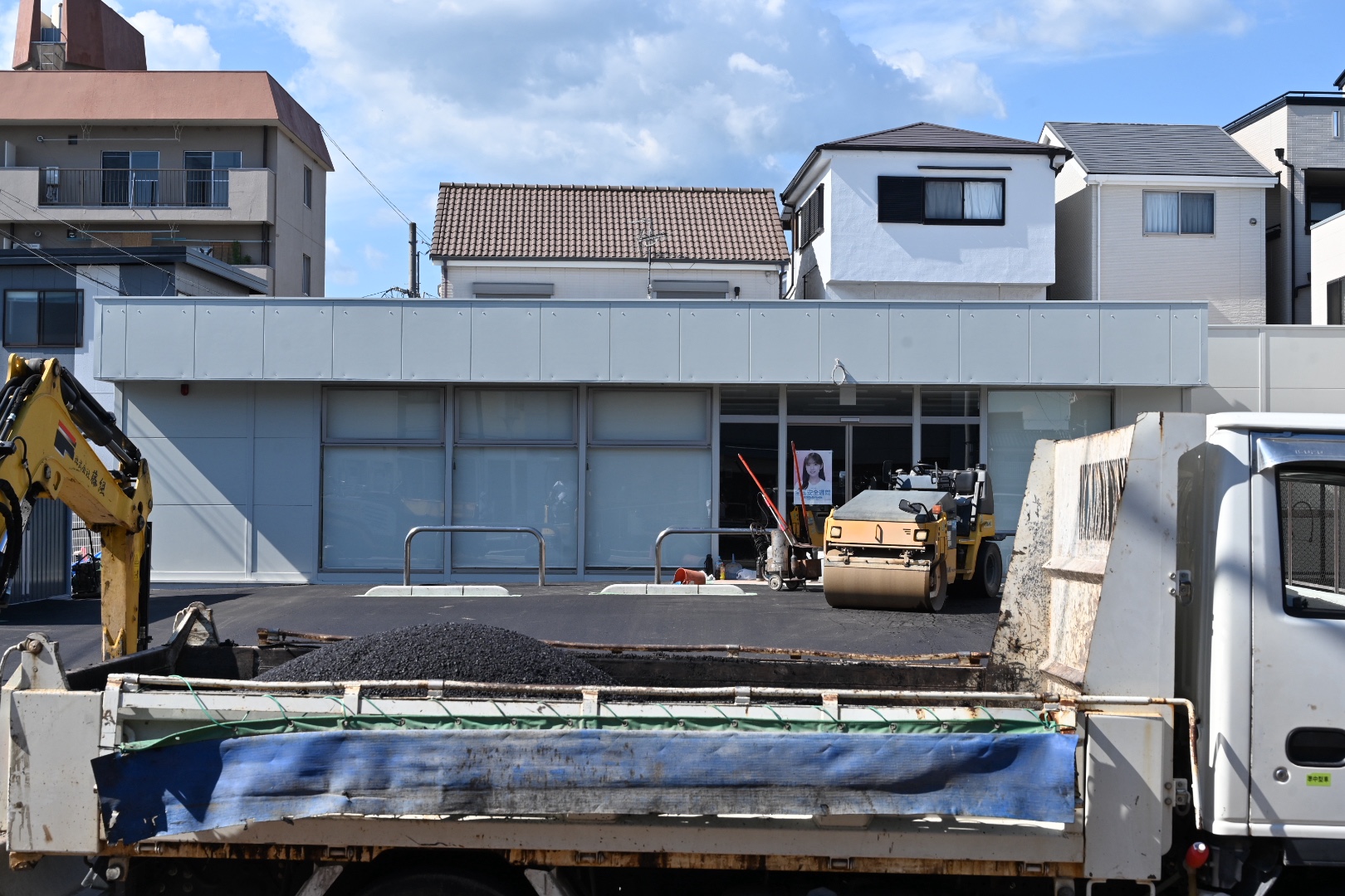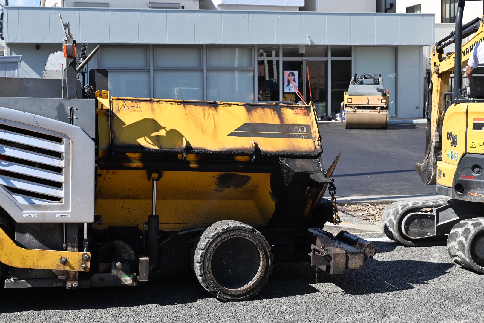 ちょうどこの日は駐車場スペースのアスファルトを固める作業中。